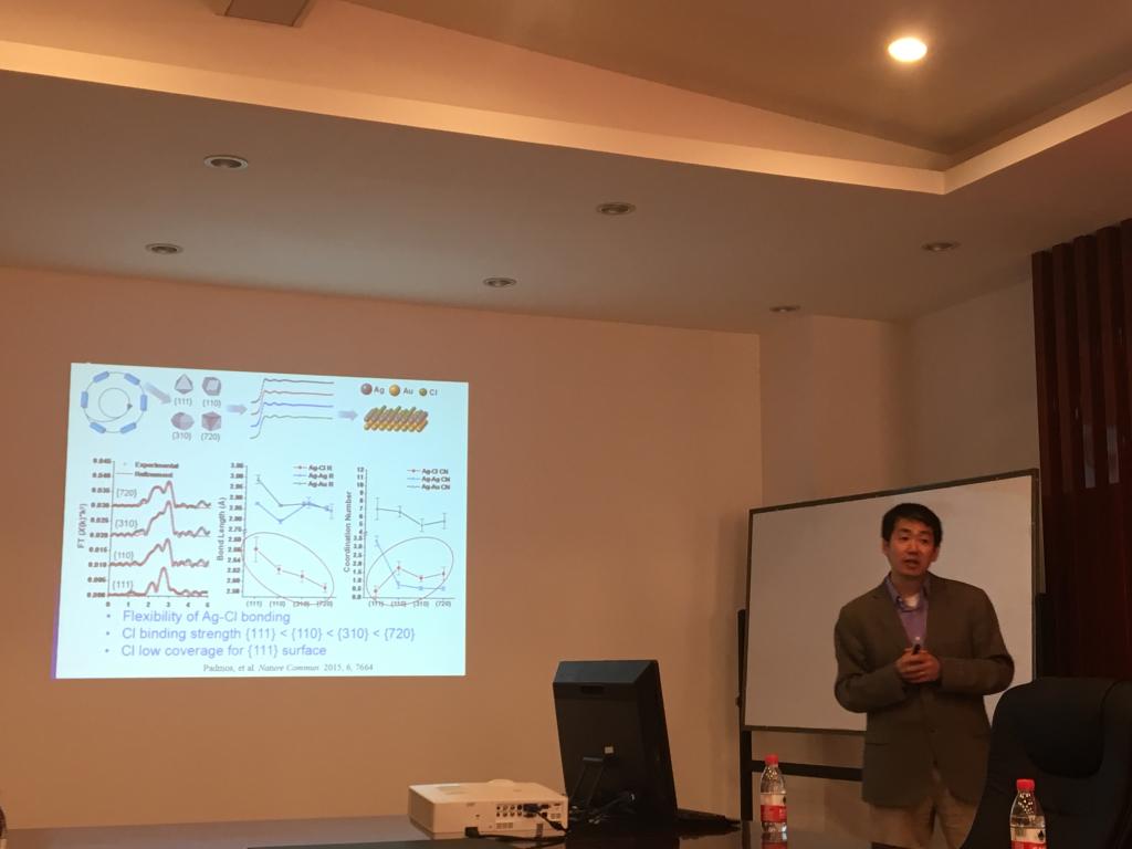 报告会上,张鹏教授结合自己课题组及合作单位利用同步辐射技术X射线吸收谱在一些金属纳米结构方面的精细表征及其在催化研究方面取得的最新进展,就同步辐射X射线吸收谱的基本原理、特点和应用为大家做了详细介绍。张鹏教授还将自己在做研究过程中的一些体会和乐趣与大家一起分享。张鹏教授深入浅出、形象生动的讲解,将人文精神与科学研究良好结合的学术风格以及前沿的学术研究成果,极大地开拓了师生的学术研究视野。报告后,张鹏教授与在场师生进行了热烈的互动交流,就大家感兴趣的问题做出了进一步的解答,让与会师生受益匪浅。