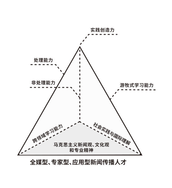 基本理念:培养有尖、有棱、有底的传媒应用型人才。形象地说,即金刚石型的人才,所谓“磨砺金刚钻,揽得瓷器活”。