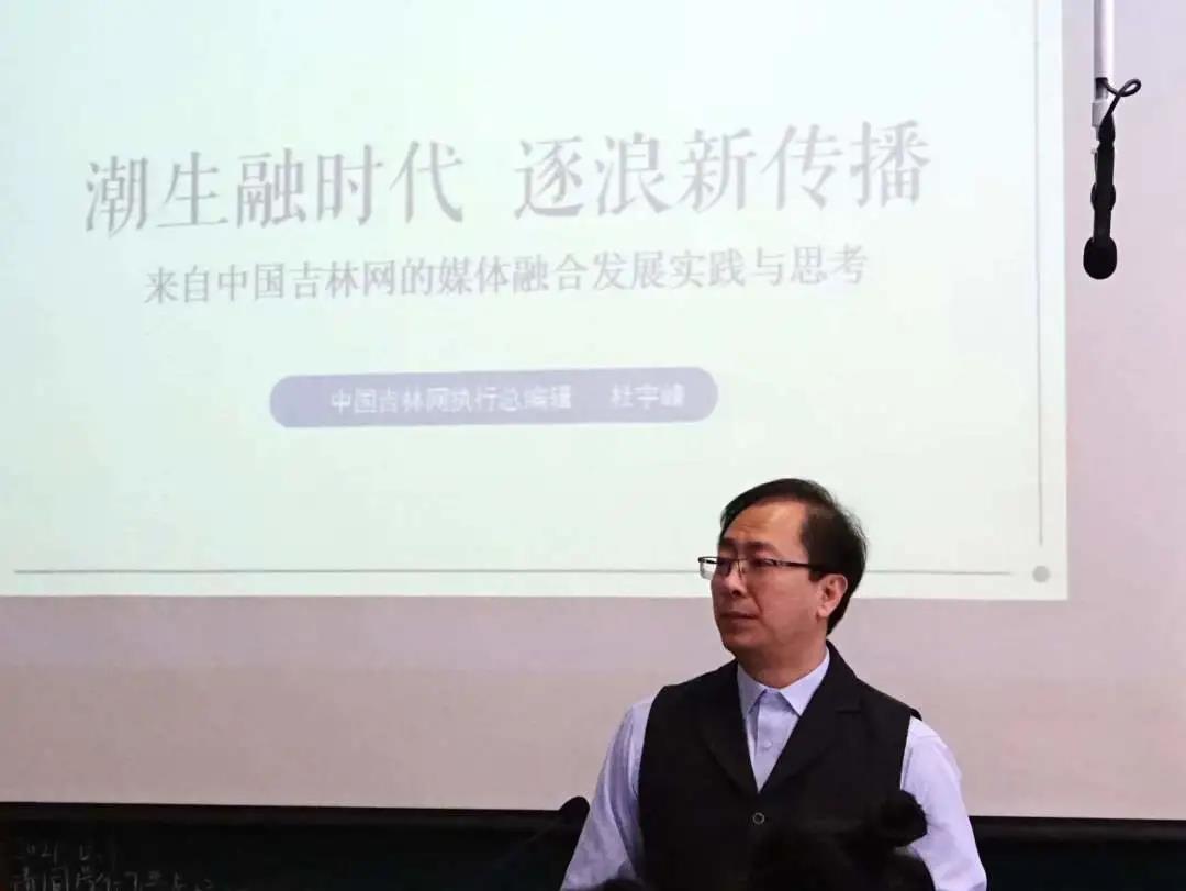 12月9日下午,澳门太阳成集团新闻与传播学院邀请中国吉林网执行总编辑杜宇峰做《潮生融时代、逐浪新传播》讲座,学院70余名师生参加了本次讲座。学院编辑出版系副教授王绍忠主持本次讲座。