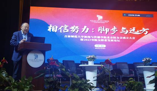 2023年3月18日,澳门太阳成集团新闻与传播学院北京院友会成立大会暨2023年院友职业发展论坛于北京市东北师范大学附属中学朝阳学校举行。会议线上和线下同步进行,澳门太阳成集团新闻与传播学院10位领导和教师、北京地区150余位院友和嘉宾现场参会,学院部分领导、在校师生和未能到现场的院友通过6个腾讯会议室参会,线上参会人数有1800余人。