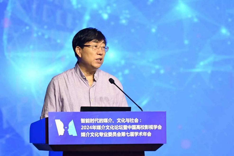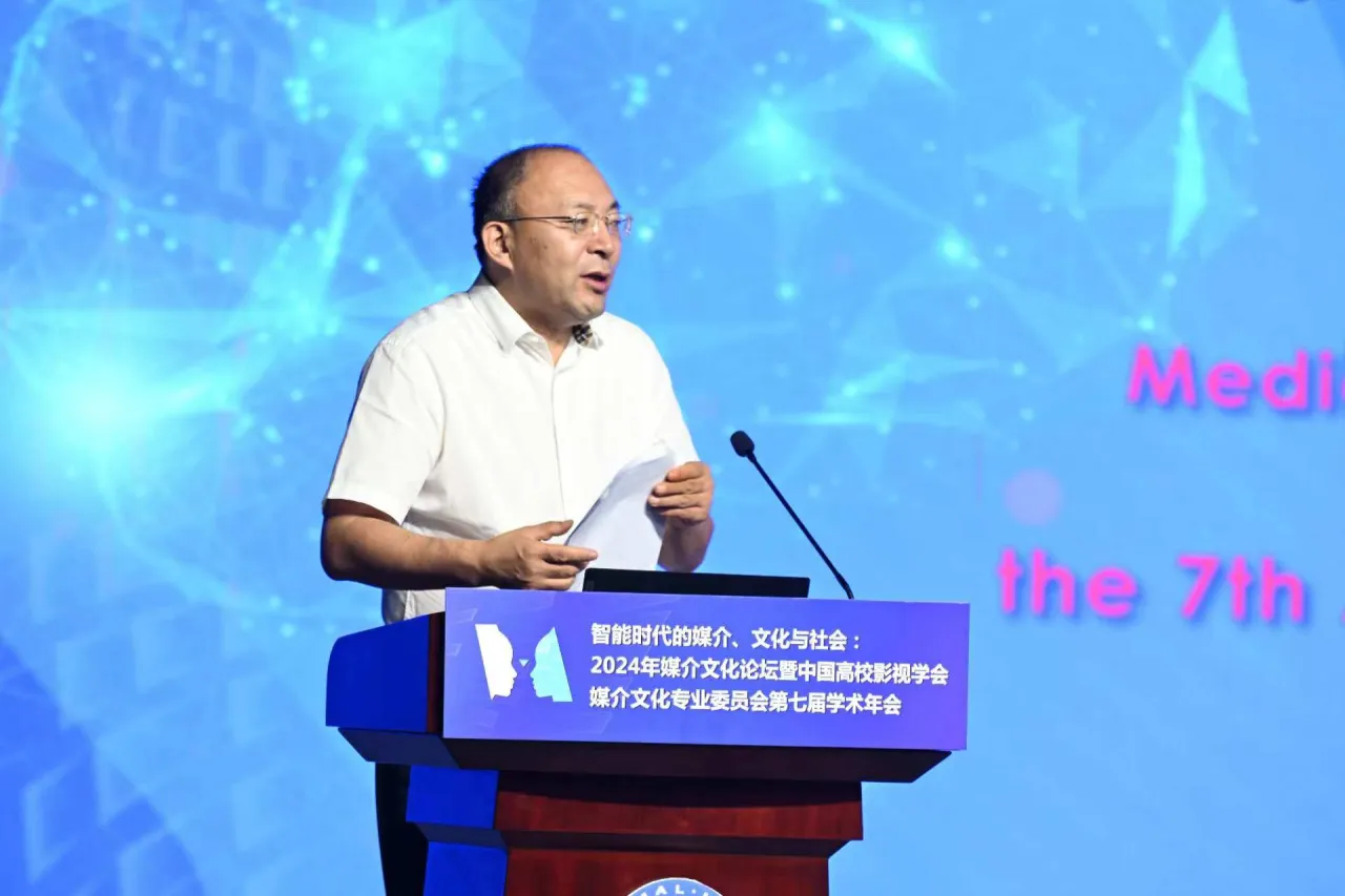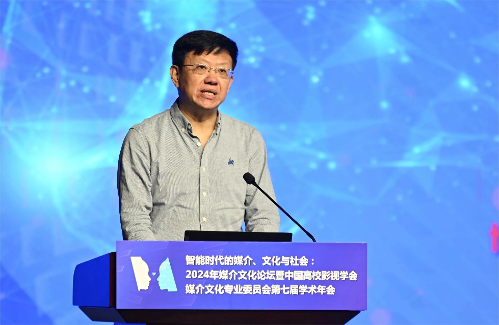 丁亚平教授代表中国高校影视学会,对年会的召开表示热烈祝贺。他在致辞中表示,在科技创新和技术跃迁的时代,我们是见证者,更是参与者。新技术的发展与应用加速和扩展了信息传播,也使得文化生产更加多样、便捷、生动、立体。期待各位与会学者、师生的佳作锐见,也希望借助媒介文化专委会的平台,凝聚更多持之以恒、求真务实的研究,回应国家、时代发展的关键命题。