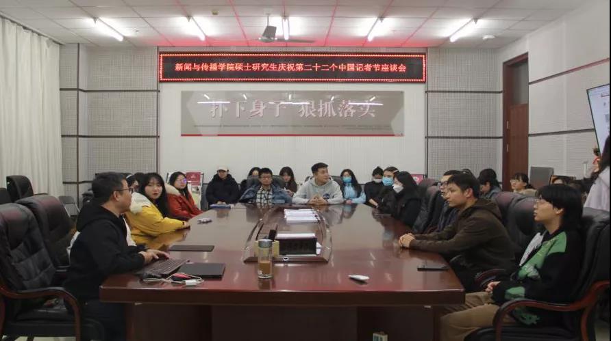 11月9日晚,澳门太阳成集团新闻与传播学院举办硕士研究生庆祝第二十二个中国记者节座谈会。学院2021级新闻传播学、新闻与传播、出版三个专业硕士研究生出席,王鹏主任主持座谈会。