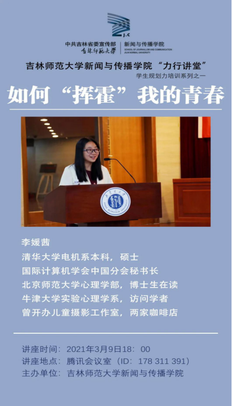 3月9号下午六点,新闻与传播学院“力行讲堂”第三讲开讲。国际计算机学会中国分会秘书长李媛茜应邀来我院作讲座,讲座题为《如何“挥霍”我的青春》。