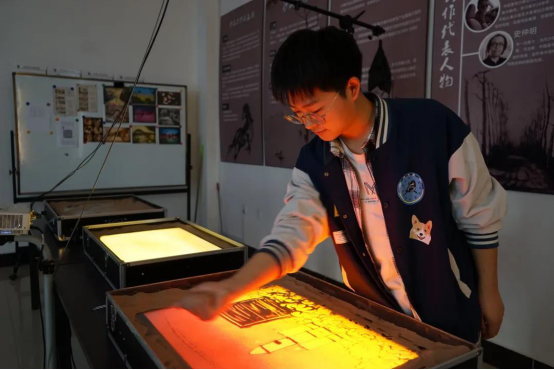 学生沙画社团成立于2014年,在指导教师的带领下,立足沙画独特的表现形式与效果,借助投影等新媒体技术,结合配乐、光效,形成了一种前卫高雅的艺术表现形式。中国画线条式构图既具有东方神韵,又呈现出现代感,每个作品都包含创作师生的热情与灵感。