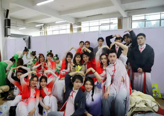 由于许多参演人员都是大一的同学们,舞台经验略显不足,我院书记和老师们多次赶往排练室鼓励大家在保证自身安全的情况下,尽自己最大的能力为新传学院争光,为吉师学子争荣。这一席话语成为了大家心中的指路灯,即使过程中很多同学出现生病,受伤等恶劣情况,也丝毫没有影响到排练。