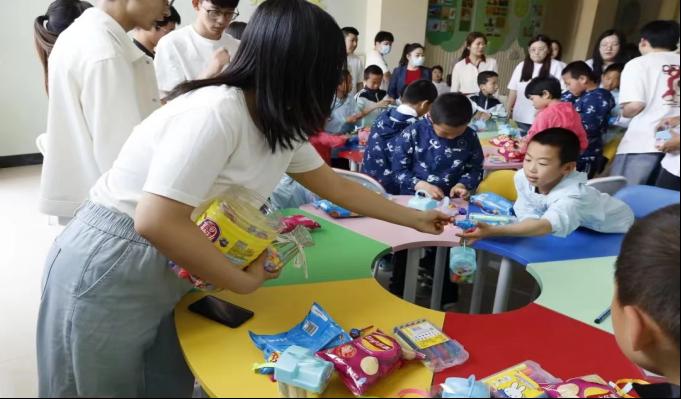 新闻与传播学院的老师们和同学们给孩子们分发了零食和文具,还陪他们一起试戴了从学院带过去的VR眼镜,当拿下眼镜的那一刻大家都看到了孩子们眼里的光,是那种对未知事物充满好奇的光。很荣幸他们对VR眼镜和新闻与传播学院这个大集体感兴趣。到了离别的时候孩子们还拉着同学们问一些学习上和生活上的问题。通过这样的方式让孩子们更好地了解新闻与传播学院这个大家庭,了解传媒这个行业。