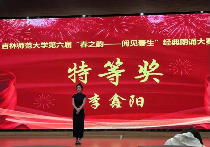 我院学子用动人的声音和充满感染力的演绎,展现了自己独特的风采与才华,充分展示了新传学子昂扬向上,自信大方的精神面貌。经过激烈的角逐,新闻与传播学院2023级广播电视编导专业李鑫阳同学荣获此次大赛特等奖项。无论是朗诵《红楼梦》中宝黛钗三人的爱恨纠缠,还是演绎《妈妈我等了你20年》中触动心灵的母子情深,李鑫阳同学用她那充满感染力的声音,引发观众强烈的内心共鸣,在掷地有声的朗诵中,让原本平凡的文字焕发出绚烂多姿的色彩。
