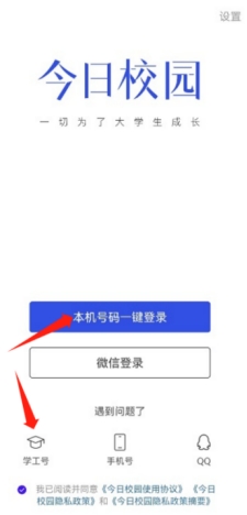 手机下载“今日校园”APP,点击最下方我已阅读协议后,点击左下角-学工号-进入学工号登录界面,输入账号密码点击登录进入。
