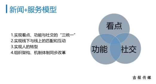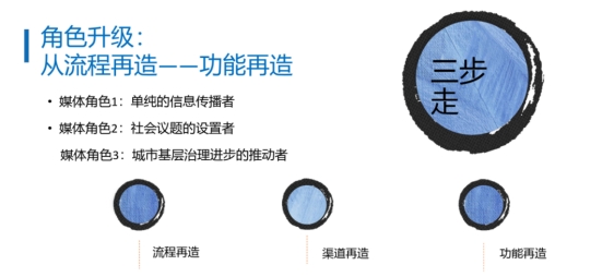 随后,李主任基于现状与问题,详细阐述了主流新媒体的突围之道。他认为主流新媒体首先应重塑价值,要规避技术内卷的转型陷阱及以自我为中心的误区,以服务为核心,以用户关系为传播机制,以地域化为特色,建立“新闻+服务”新商业模式。其次,他认为主流新媒体应采取“服务式发展,平台化生存”的发展模式,从单纯的信息传播者,发展为社会议题的设置者,最终转型为城市基层治理进步的推动者,建立看点、功能与社交“三统一”的“新闻+服务”新模型。最后,他指出主流新媒体应重构生态,要以新闻内容为依托,向政务、服务、商务领域拓展,从媒体内部融合,向跨界、跨业融合推进,建立以“新闻+服务”为核心的新闻生态圈,最终形成智慧全媒体生态体系。