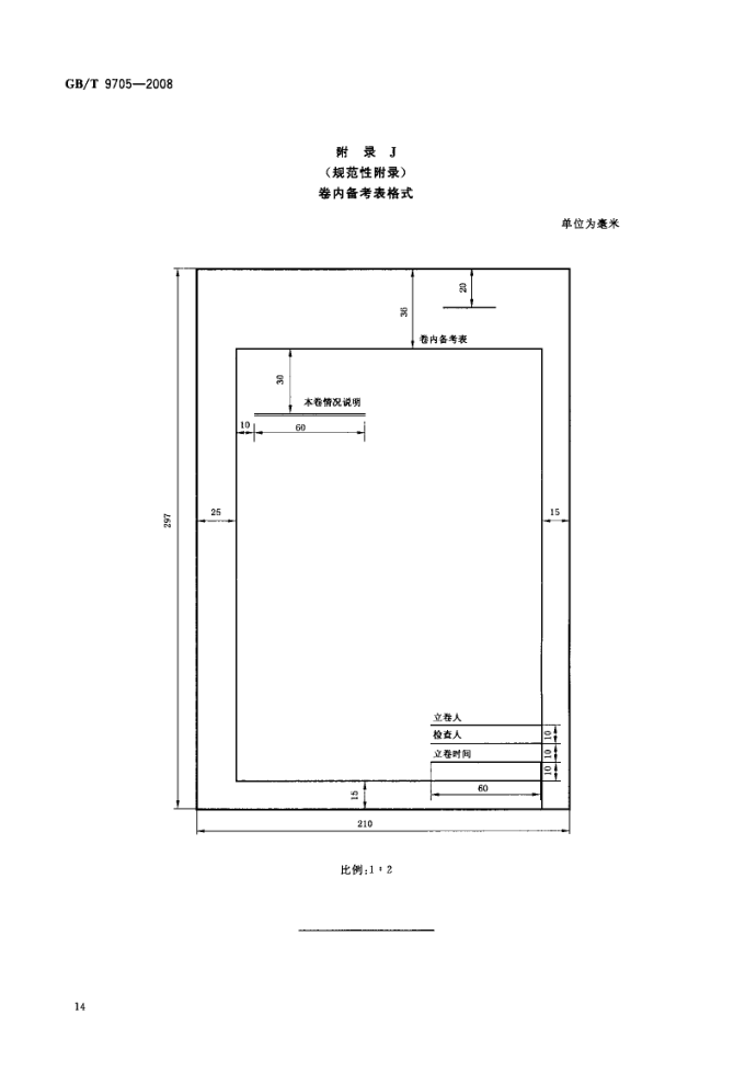 5.1 卷内备考表外形尺寸及页边与文字区尺寸