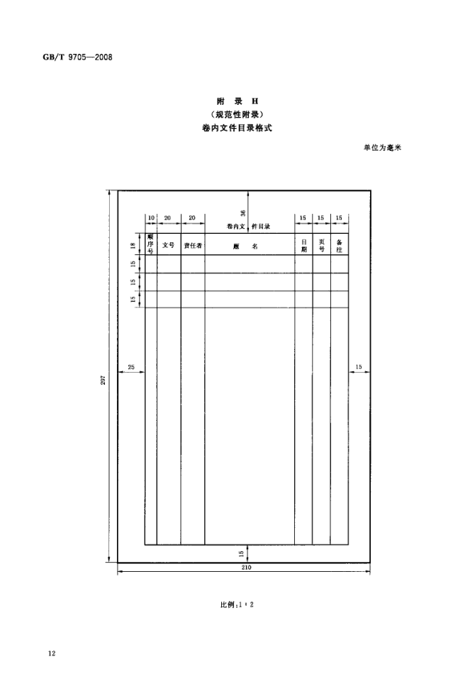 卷内目录用纸右白边(翻口)宽(15±0.5mm)(见附录H)