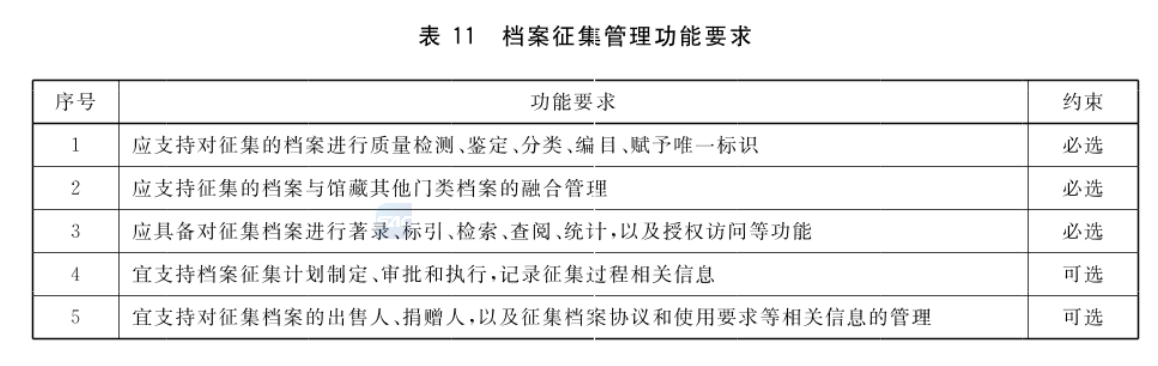 系统应具备对征集档案进行管理的功能。表 11 给出具体要求。