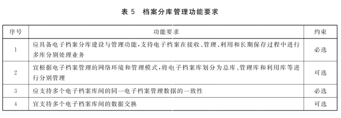 应根据电子档案接收、管理、保存和利用等业务活动要求及其所依赖的不同网络环境,分别建立电子档案库。表 5 给出具体要求。