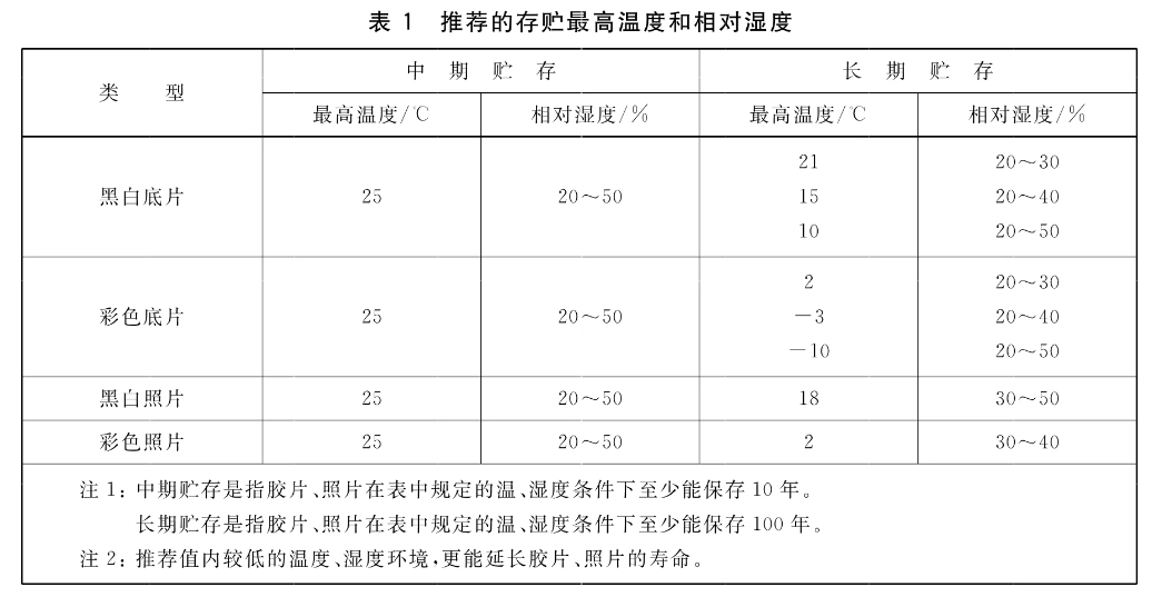 6.2.2 底片、照片应恒温、恒湿保存。长期贮存环境,24小时内温度的周期变化不应大于±2℃,相对湿度变化不应大于±5%。中期贮存环境,24小时内温度的周期变化不应大于土5℃,相对湿度变化不应大于±10 %。