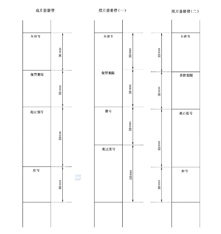 照片册册脊的格式:照片号为格式一的照片册册脊见附录B中的照片册册脊(一);照片号为格式二的照片册册脊见附录B中的照片册册脊(二)。