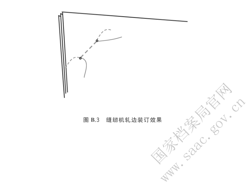 a)定期30年保管,不需要移交档案馆的归档文件,宜采用线装法装订。归档文件页数较少的,采用手工进行直角装订(T1)或缝纫机轧边装订(T2),页数较厚的,采用三孔一线装订(T3)。