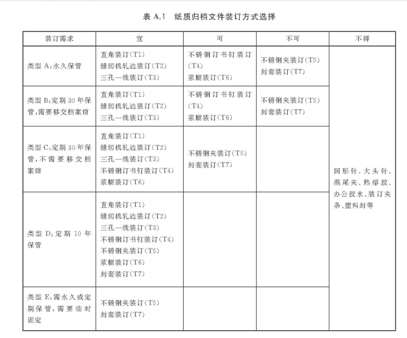 根据归档文件保管期限和整理要求,归档文件装订需求分成 5 类: