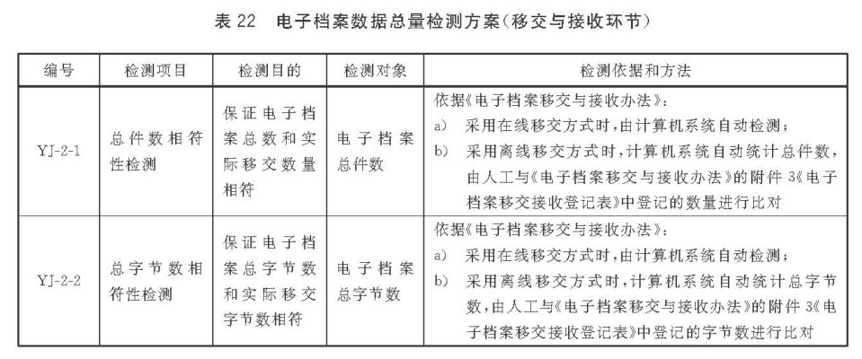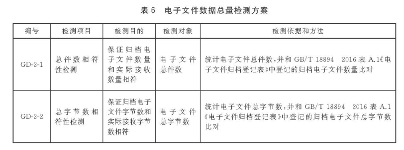 检测实际归档的电子文件数量和字节数与 GB/T 18894一2016 的表A.1《电子文件归档登记表》中登记的电子文件数量和字节数是否相符。