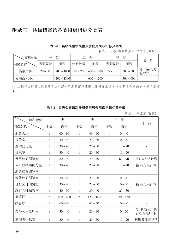 (2)对外服务用房和档案业务和技术用房面积计算方法两类用房存在设备的,根据设备占地面积推算,不存在设备的,依据调研数据给出相应指标。