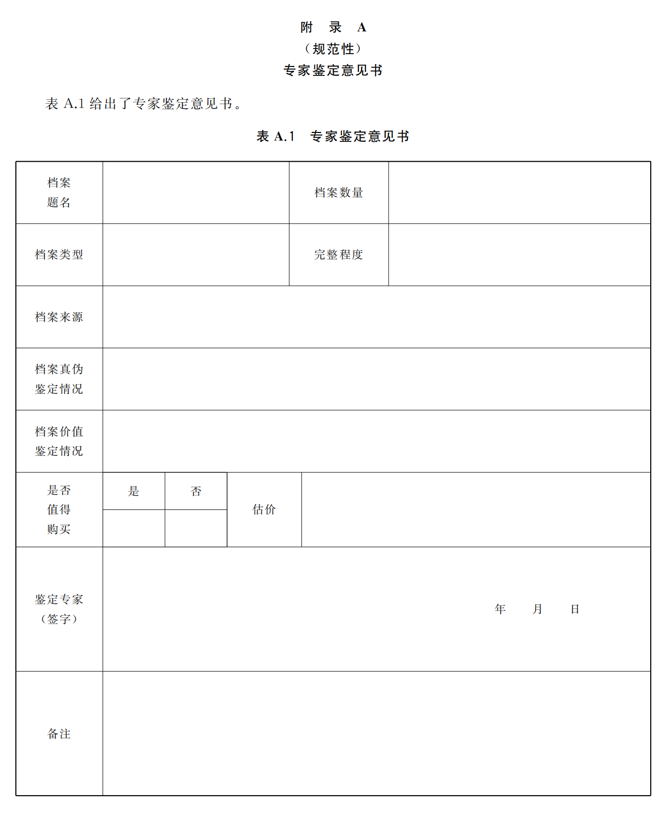 组织不少于3名相应专业领域的专家,对征集档案的真伪、价值及估价进行鉴定评估,出具明确、一致的专家鉴定意见书(见附录 A)。