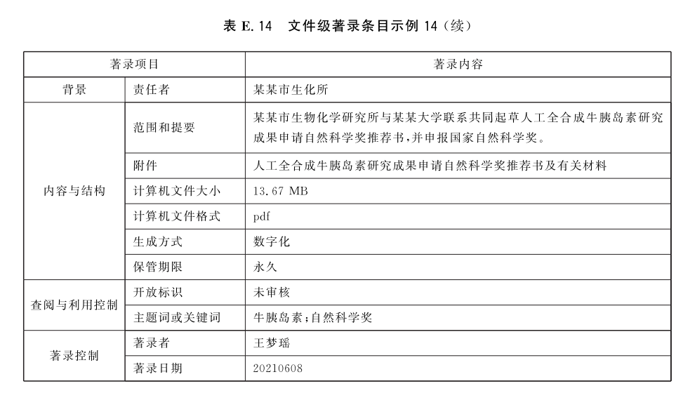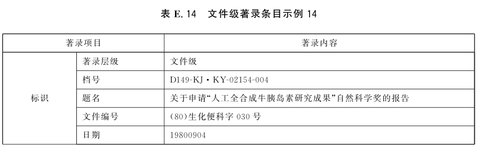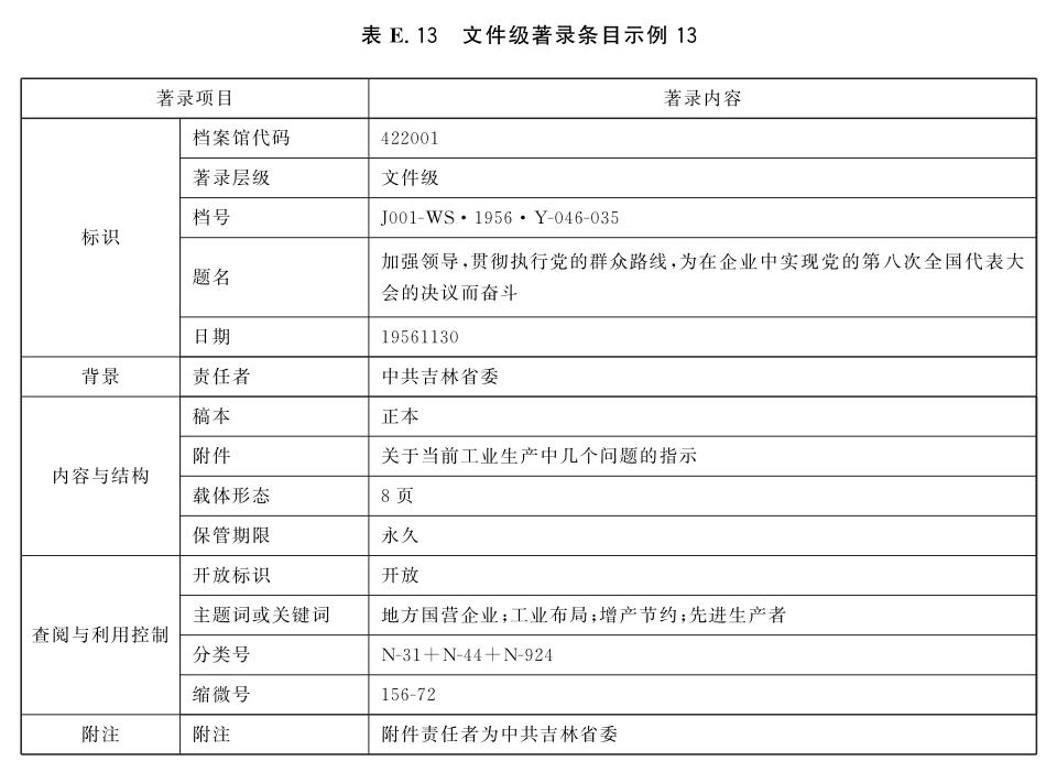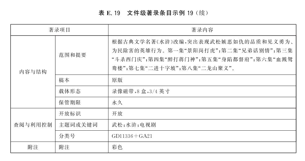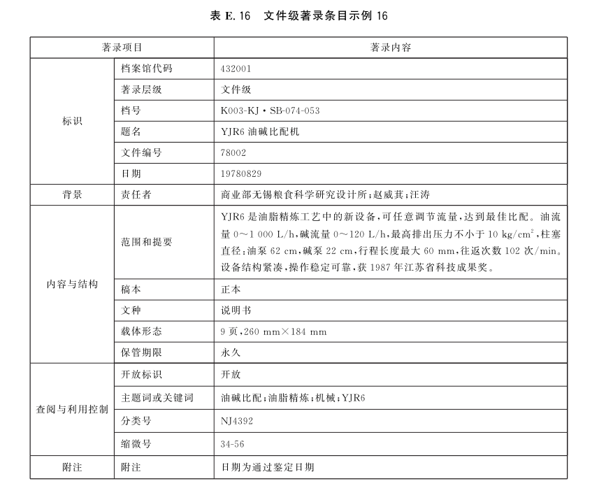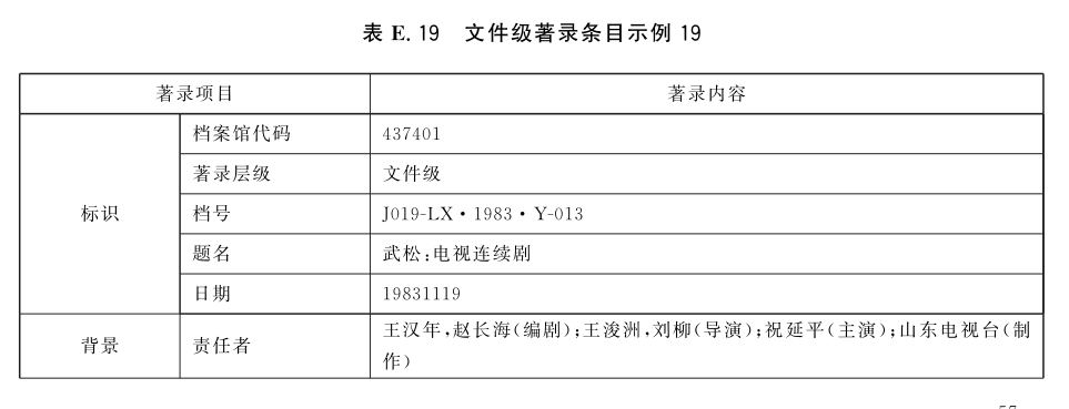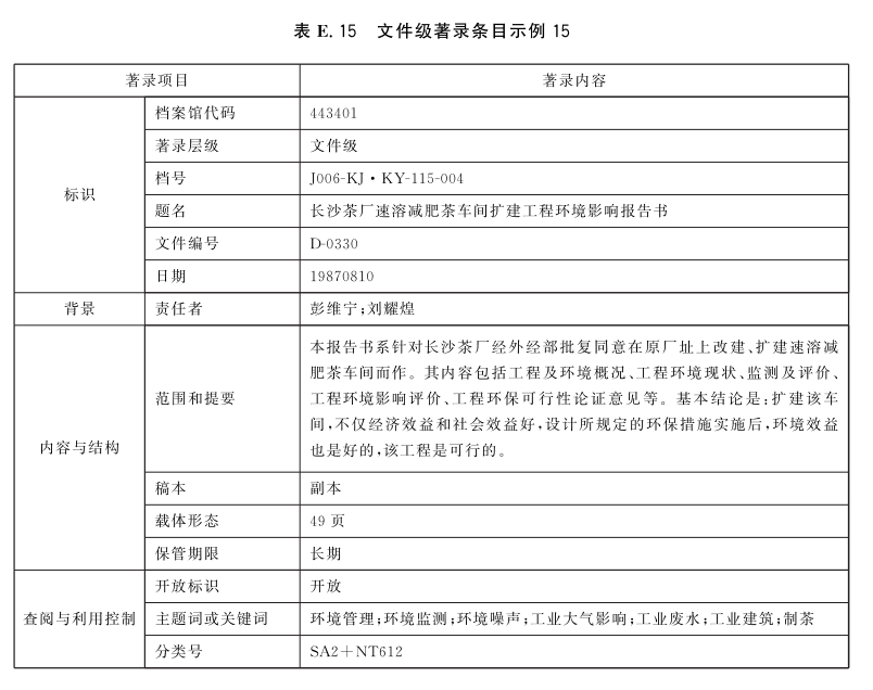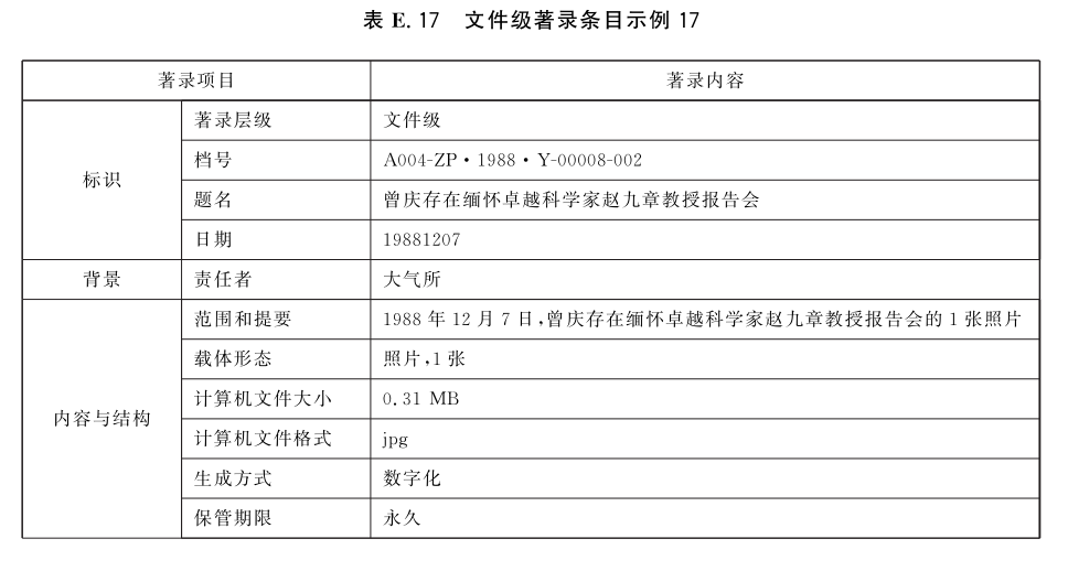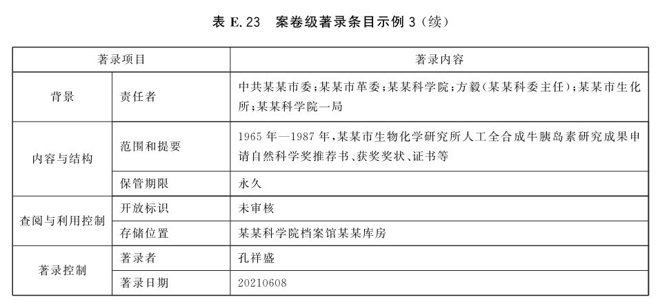 表E.29和表E.30给出了全宗级的著录条目示例。