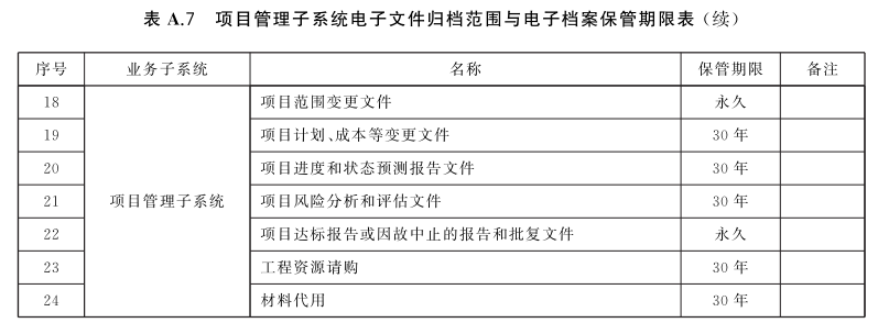 7.2.2 电子文件名称与附录A不一致或未列出的,参照相关门类档案管理规定划分保管期限。