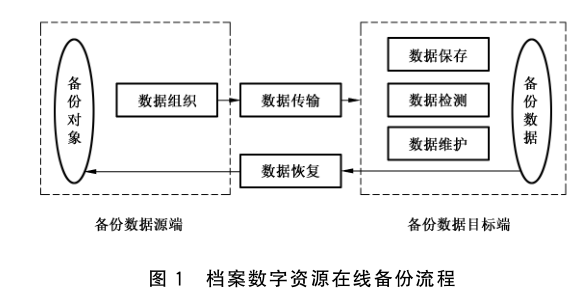 在线备份包括数据组织、传输、保存、检测、维护和恢复等基本流程,数据传输与恢复通过在线方式进行,具体如图1所示。