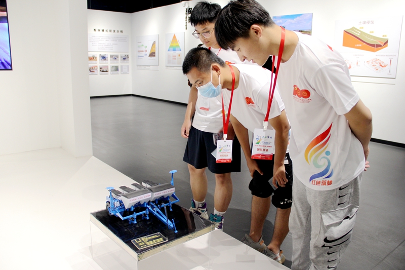 七月的梨树大地,田野披翠、绿意盎然。微风吹过,一望无际的玉米地碧波荡漾、郁郁葱葱。去年7月22日,习近平总书记到梨树县国家百万亩绿色食品原料(玉米)标准化生产基地核心示范区考察粮食生产情况,战略考量意味深长。活动中,师生代表实地参观了农大实验站、黑土地博物馆、梨树县国家百万亩绿色食品原料(玉米)标准化生产基地核心示范区,认真了解黑土地保护“梨树模式”,对保护好、利用好黑土地这一“耕地中的大熊猫”有了深刻认识。来到卢伟农机农民专业合作社,体验农业现代化进程,深刻领会习近平总书记“藏粮于地、藏粮于技”的发展理念。
