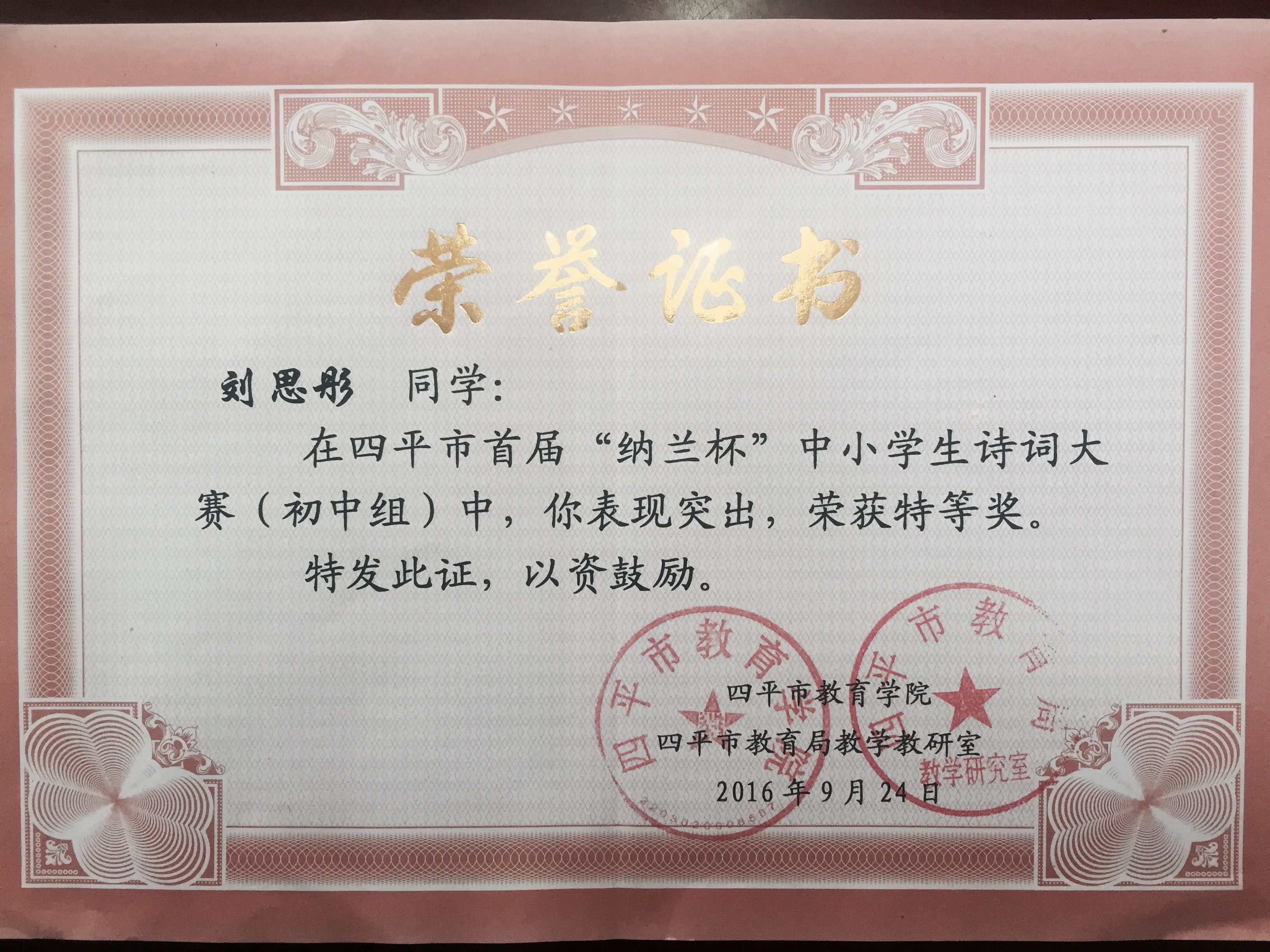 为培养学生学习古诗文的兴趣,提高诗词鉴赏能力,推动语文学科教学工作,四平市教育局在第三中学举办了以“奠基诗化人生,滋养人文气韵”为主题的四平市首届“纳兰杯”中小学生诗词大赛。