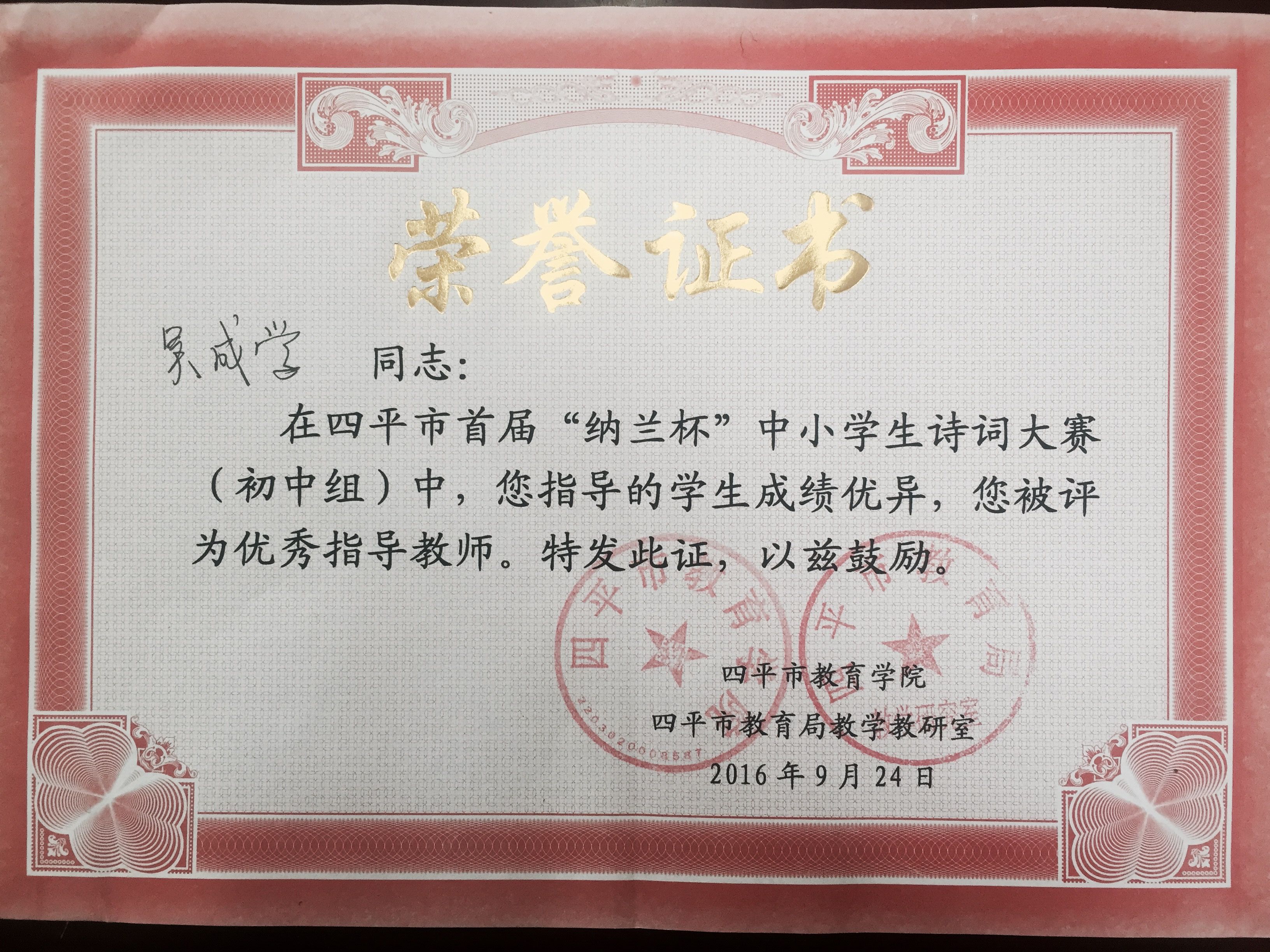 好成绩的取得是与太阳成官网的办学理念、学校领导的关心支持、指导教师的辛苦努力、参赛同学的全力投入密不可分。作为指导教师、班主任的吴成学老师也在课余时间对其精心指导,付出了大量心血。