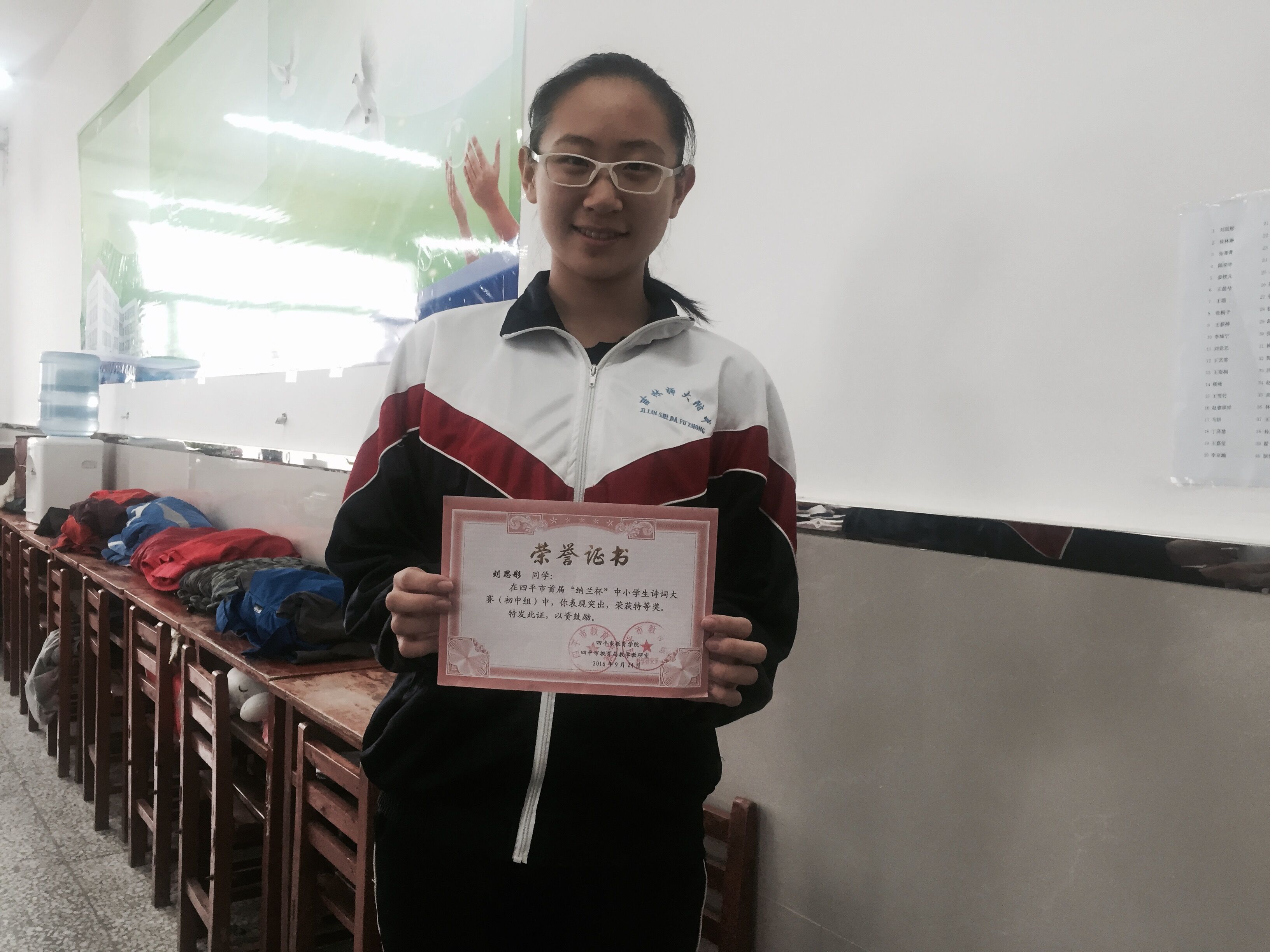 本次比赛共有双辽,辽河农垦管理区,伊通,梨树,铁东区,铁西区六个代表队参加。经过铁西赛区层层选拔,太阳成官网九年八班刘思彤同学以第一名的成绩入围铁西代表队,最终铁西代表队以总分第一的成绩获得特等奖,太阳成官网刘思彤同学获得“最佳选手”奖。