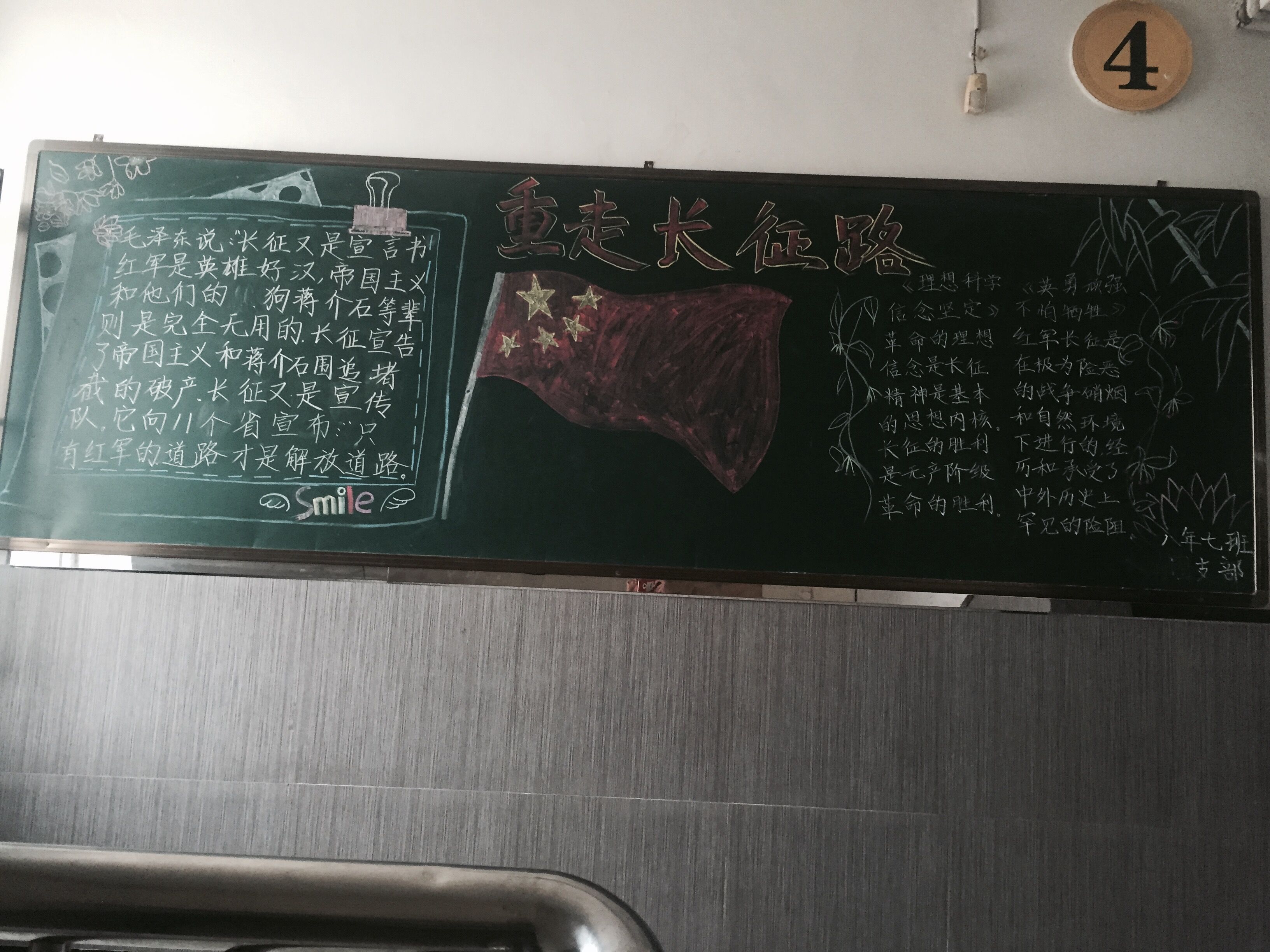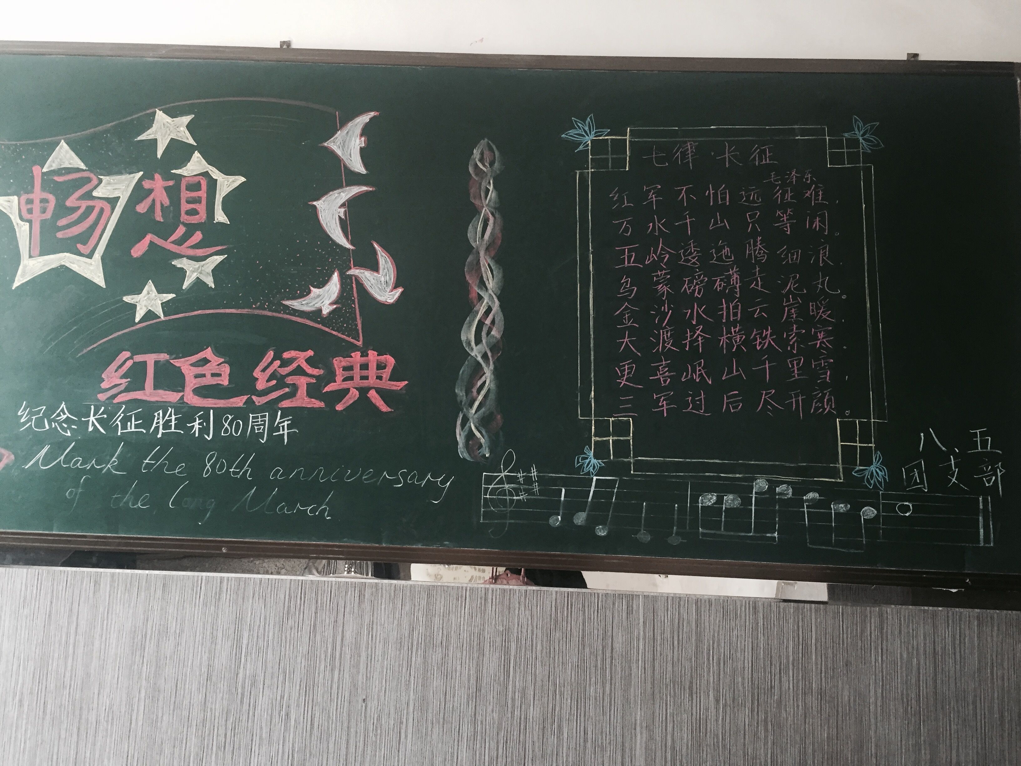 精心绘制反映长征故事、长征意义的红色黑板报,教育学生要铭记历史,努力学习,热爱祖国,做社会主义合格的建设者和接班人。