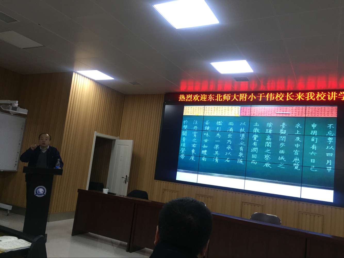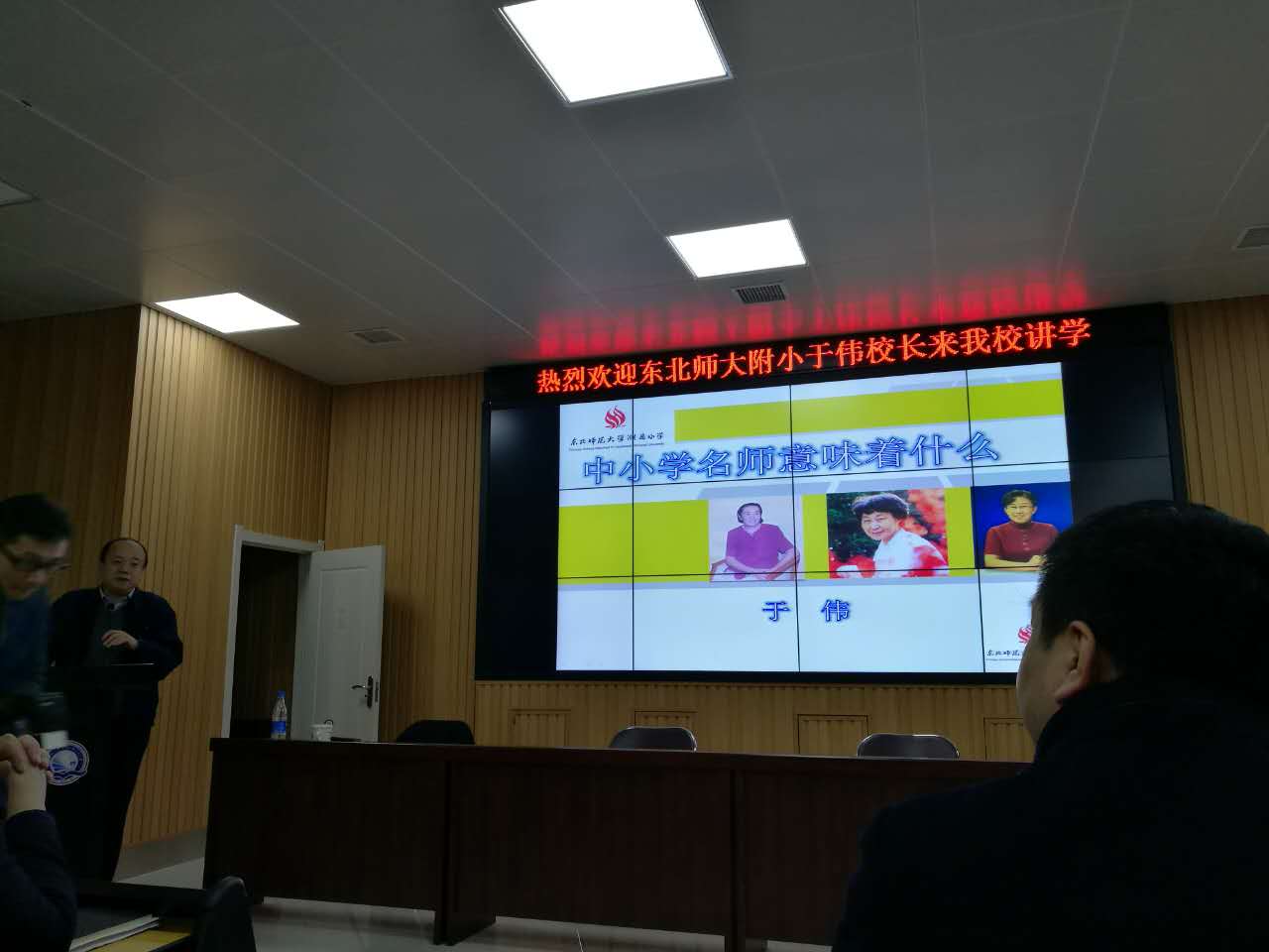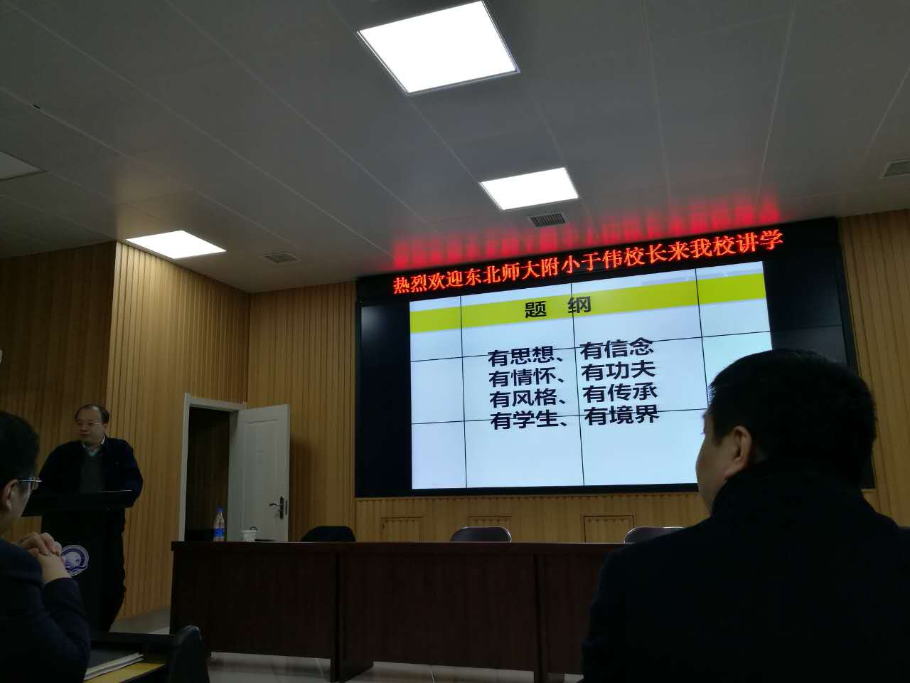 “传道授业解惑,修德启智明理”是附中附小一直秉承的校训,“办人民满意教育”是我们坚持如一的宗旨,在已形成办学风格和特色的同时,为进一步开辟品牌强校之路,1月9日,太阳成官网特邀东北师大附小校长于伟来校作了一堂“中小学名师意味着什么”的讲座。