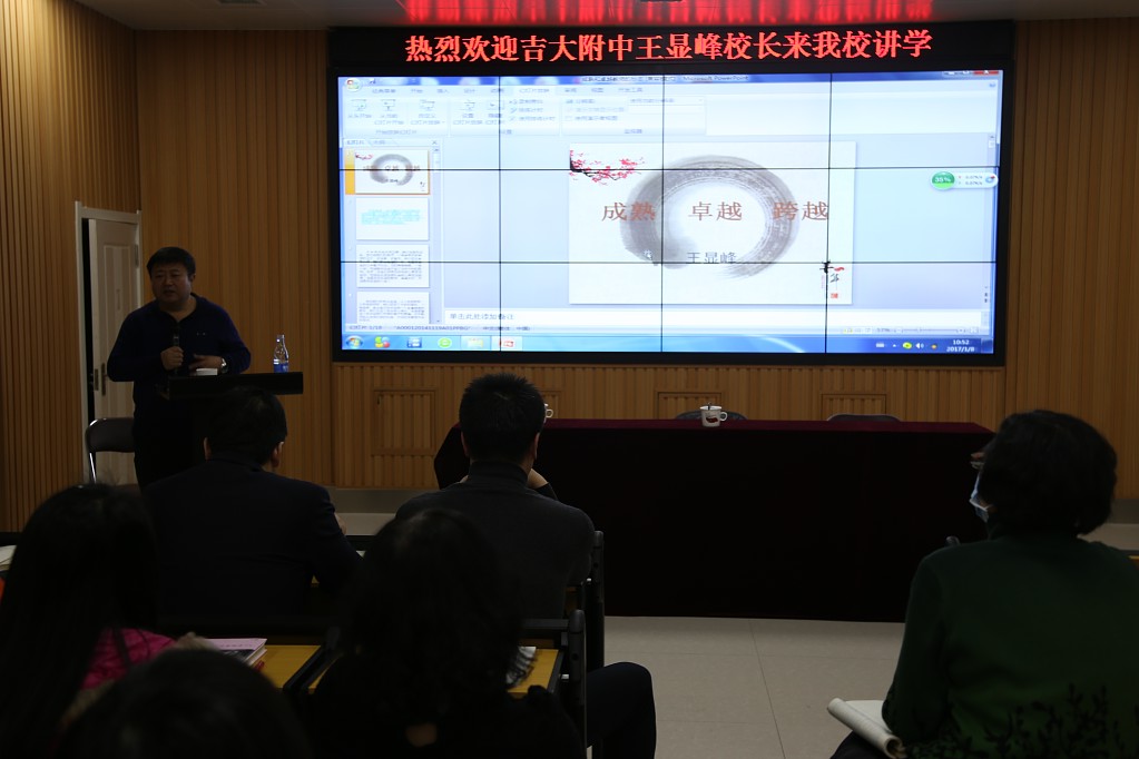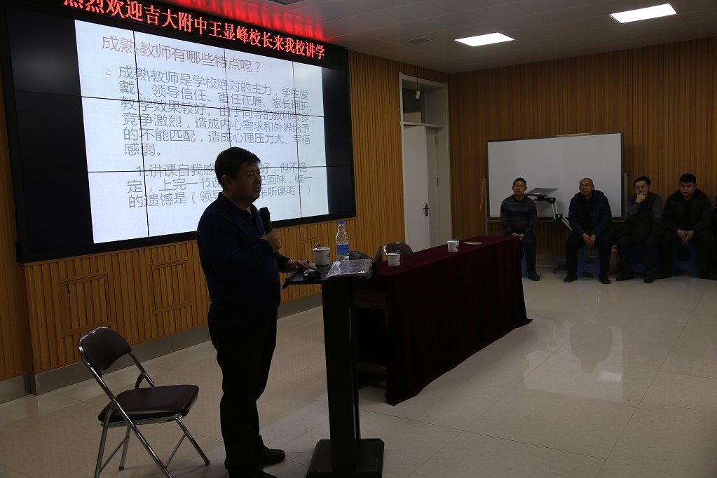 为了全面提高教师的文化素养,增强专业技能,提高职业幸福指数,太阳成官网利用寒假时间对教师的师德、师能、信息技术等多方面知识进行培训。1月8日,太阳成官网诚邀吉大附中校长王显峰来校做了一堂题为“教师职业生涯的专业成长”的讲座。
