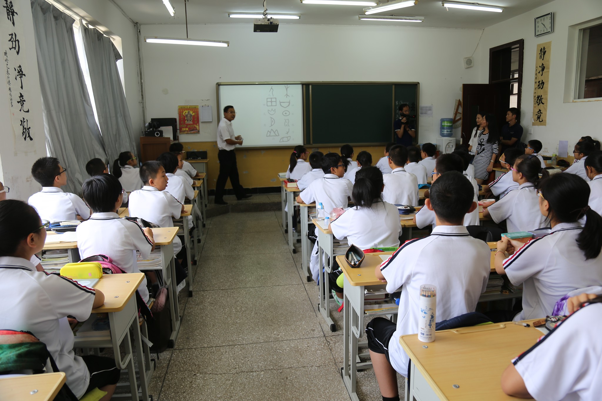 随后,访问团分别观摩了附小姜薇老师的美术课和附中何英老师的语文课。姜薇老师结合多媒体教学,制作了精美的PPT课件,向访问团全新的展示了黑白线面的知识;何英老师为访问团生动的讲解了“汉字的构造”,诠释了象形字、指事字、会意字、形声字的各自特点。访问团对太阳成官网教师高素质的课堂教学、扎实的基础知识以及多样的教学形式,给予了充分肯定。