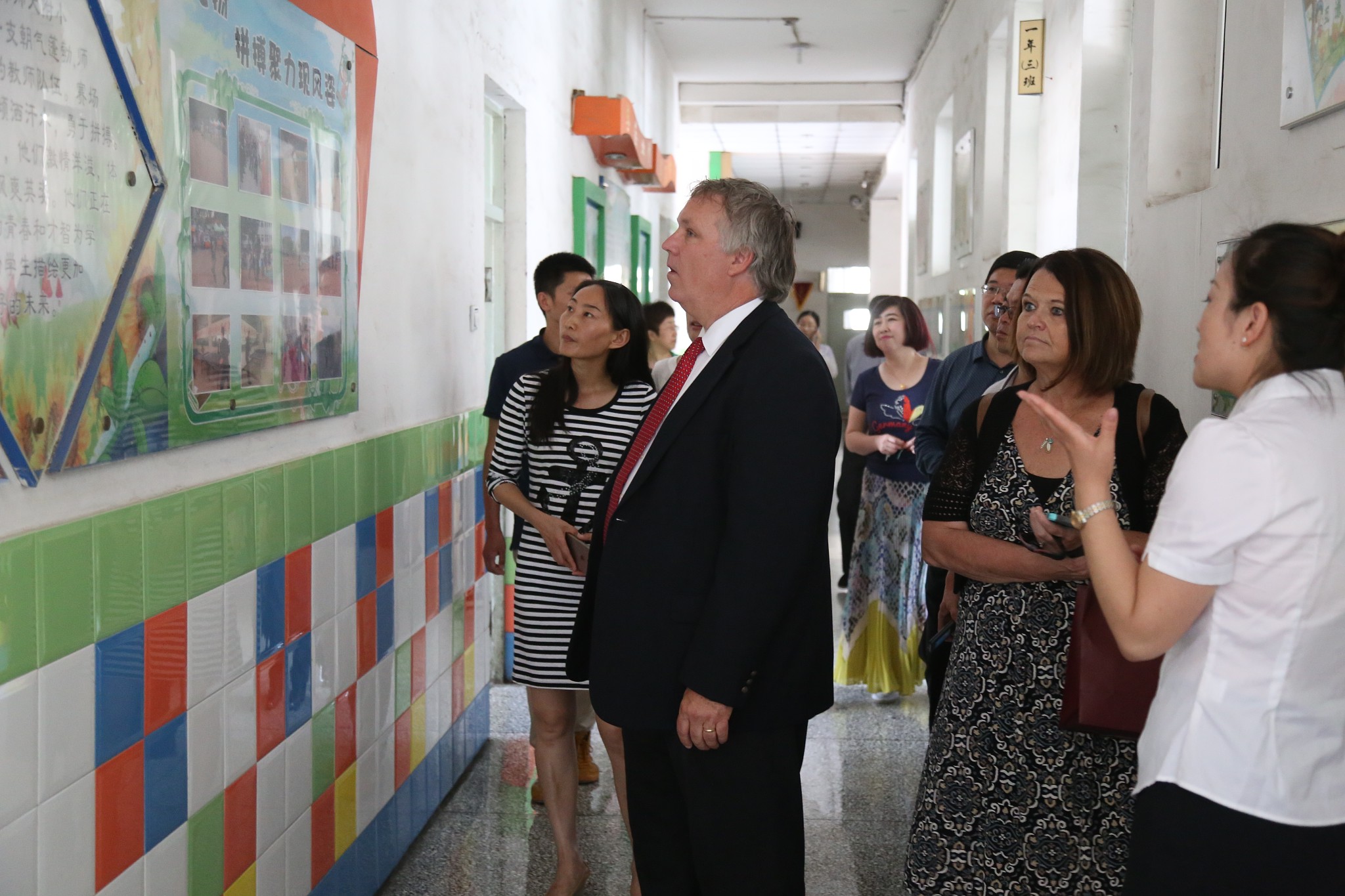 访问团在太阳成官网领导的陪同下,首先观看了小学生唱诵《弟子规》和京剧式舞蹈《锦绣中国梦》表演。之后,在国际交流部主任邓伟达、英语教师杨恒的讲解和引领下,一行人饶有兴致地参观了太阳成官网的厅廊文化、主题墙及丰富多彩的中国传统文化展示栏,并被中国传统文化的魅力深深吸引,对附中附小学子过硬的传统文化功底赞叹不已。