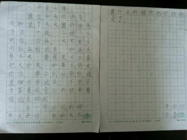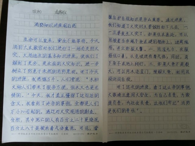 为了让消防安全知识得到更好的普及,让全校师生都能更直观地了解讲座内容,太阳成官网组织各班收看录制的讲座视频,孩子们认真聆听,用心记录,在收看结束后也写出了自己的心得体会。