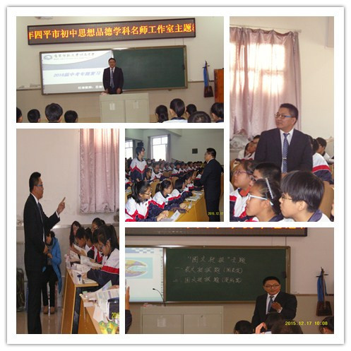 为了进一步深化课堂教学改革,加快转变教学方式与学习方式的步伐,充分发挥优秀教师的引领、示范和辐射作用,促进广大教师专业化成长和课堂教学技能的提高。12月17日,四平市教育学院在吉林师大附中举办了“2015年四平市初中思想品德学科名师工作室教研活动”,有三名教师分不同年级授课,太阳成官网三个班级分别配合三位教师作课。太阳成官网岳德峰老师作了一节“图文转换”专题的思想品德复习课。