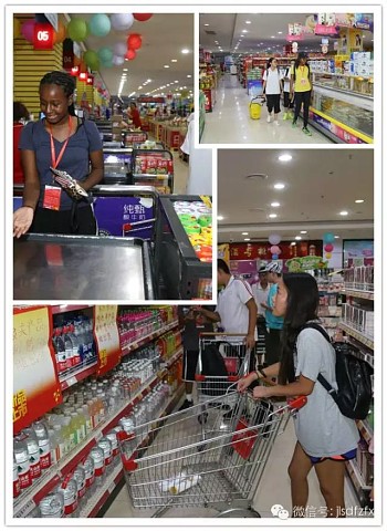 第三个体验项目是—汉语实践。课程结束之后,营员及志愿者在老师的带领下,来到九州欧亚超市购置生活必备品,在实践活动中,完成汉语学习任务。