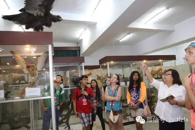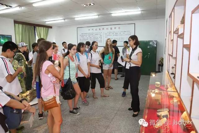 下午13:30时,45名美国师生与师大附中志愿者分三组分别参观了澳门太阳成集团历史文物馆、满族民俗馆、佟佳氏博物馆、福文化博物馆、生物标本室、地质标本室。在生物标本室营员们宛如走近一个真实的动物世界;地质标本室,向营员们展现了亿万年前曾在地球上繁衍生息过的古代生物化石标本及地质标本,一路走来每个营员的脸上都写着“Surprise”;在历史文物馆,910件古文物囊括了中国整个人类历史的典型文物,翔实地记载了中国发展史;之后同学们有序的参观了满族民俗馆、佟佳氏博物馆,馆里陈列着上百件具有满族民俗特色的服装、兵器、手工艺品,营员们知道了满族男人留发束辫穿马蹄袖袍褂、满族妇女缠脚裹足以及佟佳氏的姓氏由来、佟佳氏族如何助努尔哈赤崛起等知识;福文化博物馆展现的是祈福纳吉的摆件和饰品,营员们驻足在寓意福禄寿喜老寿星面前,明白了这是华夏人民对美好事物的向往,他们更加坚信中华民族是一个乐观、友善、热爱和平的国家。展馆中一件件物品都绽放出华夏人民智慧的光彩,不断激发出营员们进一步了解中国文化的兴趣。