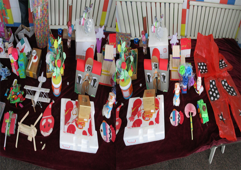 2015年3月6日,吉林师大附小举办了寒假手工作品展览。同学们凭借丰富的想象力和创造力,用雪糕棍制成了滑翔机、小房子等;用废弃的饮料瓶制成精美的工艺品;包装盒则变成了城堡、坦克车;还有的用碎布头做成了美丽的花朵…‥