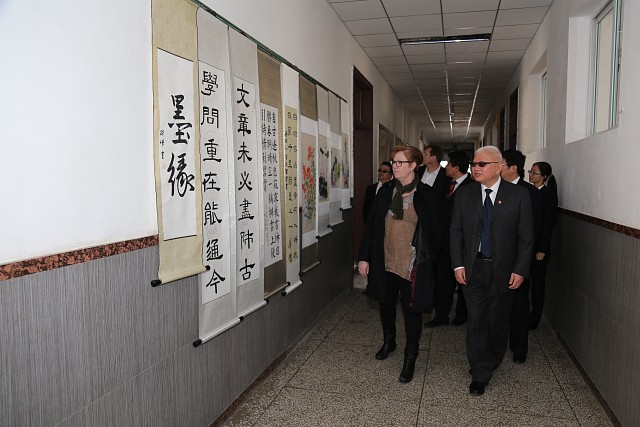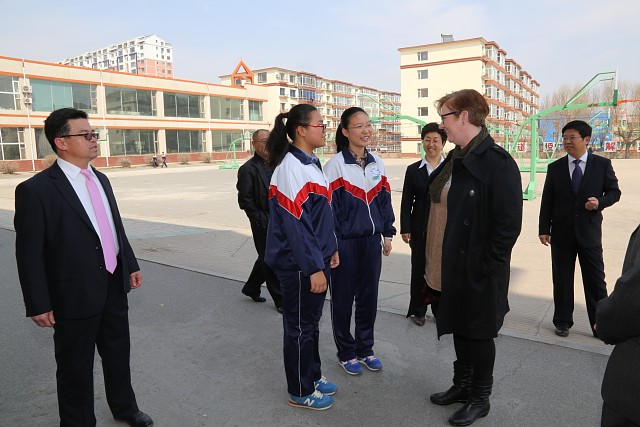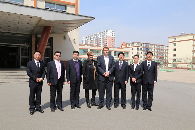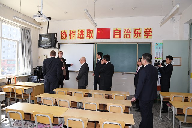 首先,吉林师大附中附小校长李峰对太阳成官网的基本办学情况进行了简要介绍,随后,代表团在吉林师大副校长祖国华及附中附小全体校领导的陪同下饶有兴致地参观了学校的教学、活动及实践场所,并与附中学生进行了亲切的英文对话交谈。参观过程中,代表团成员对太阳成官网的教育理念、办学目标、校园文化建设和学生课外文化活动等方面给予了高度评价,特别对太阳成官网学生的英语听说能力给予肯定和赞赏,并表示希望与太阳成官网建立友好关系,为两校间师生的交流与发展提供更为广阔的平台。