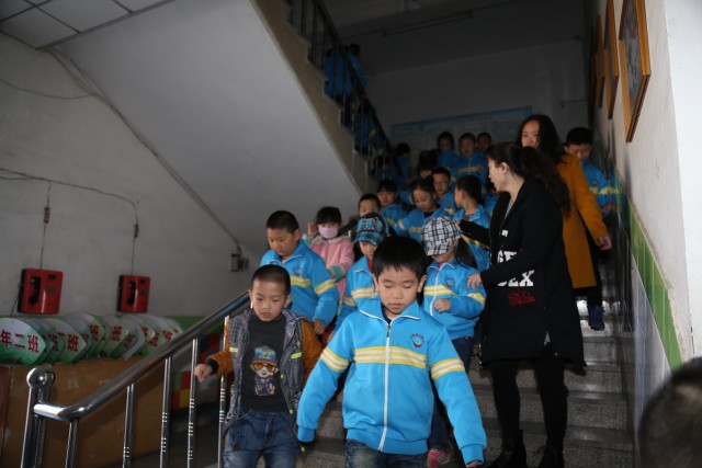 班主任和任课教师分别在班级队伍的前后组织学生按照指定路线迅速、有序地撤离教学楼,全校师生1492人全部到达操场的指定位置,整个过程共用时3分05秒。