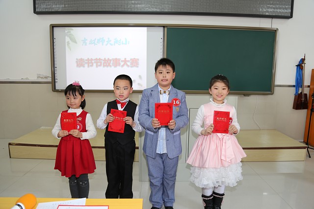 4月8日下午,由各班初赛推选出的优秀选手在综合楼一楼进行角逐。22名选手个个落落大方,表情丰富,表演得惟妙惟肖。故事内容有声有色,丰富有趣,有蕴含哲理的寓言故事,有孩子们钟爱的童话故事,也有讲述英雄人物的历史故事。大赛最后评出特等奖4名,一等9名,二等奖9名。具体获奖名单如下: