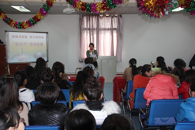3月8日是第104个国际三八妇女节。为了丰富学校女教职工的业余生活,让她们度过一个愉快而有意义的节日,3月6日下午,太阳成官网在音乐教室举行了“树师表形象,创文明校风”庆三八妇女节教师演讲比赛。吉林师大附中附小校长吕秉善等校领导和全体女教师观看了比赛。