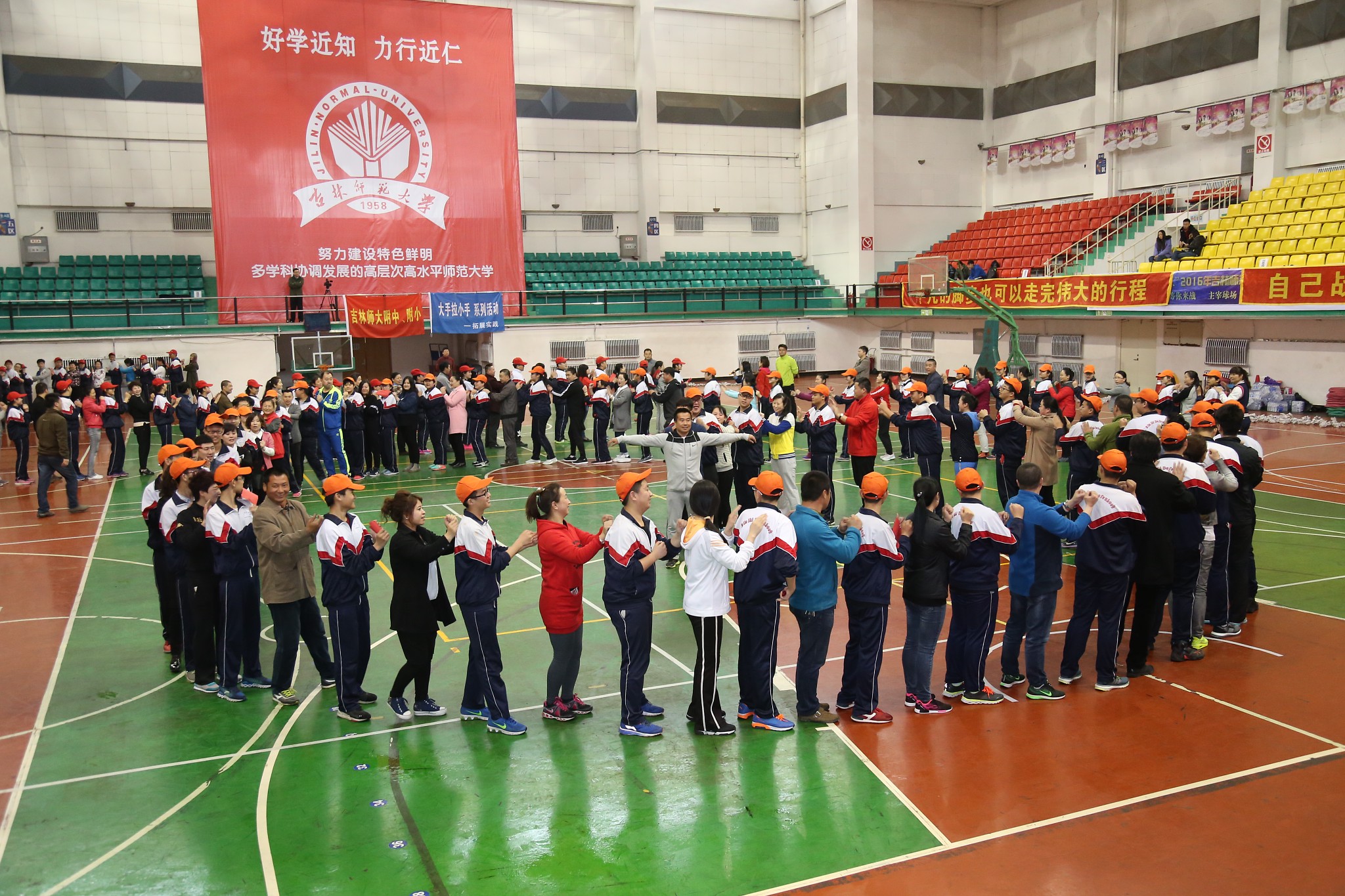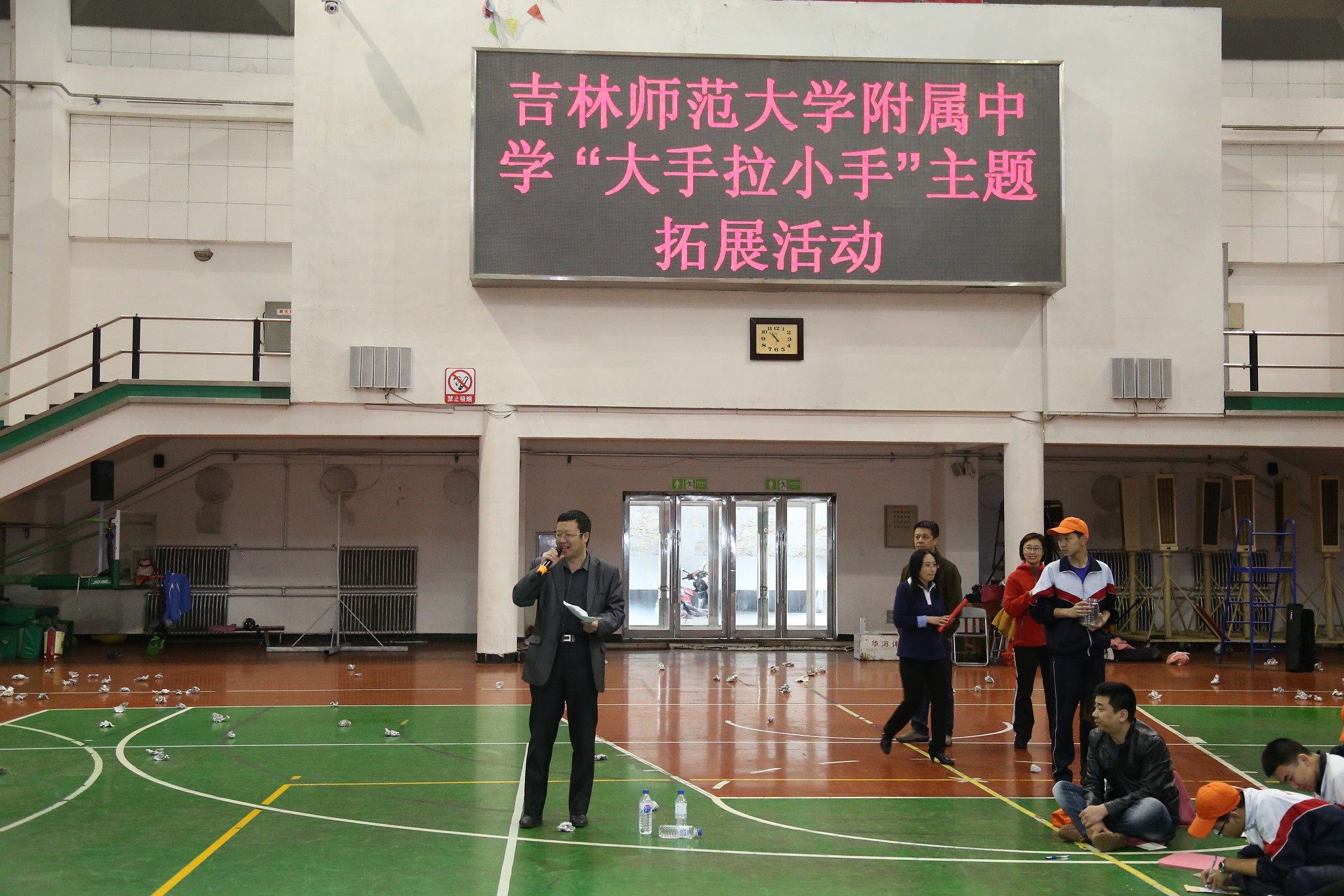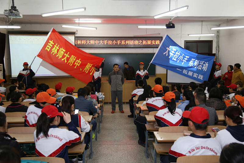 活动开始前,科研处主任刘建文为“大手拉小手”主题拓展实践活动致辞。他首先代表学校对家长的到来表示诚挚的欢迎,并感谢家长三年来对附中一如既往的支持。随后,他介绍了学校举办此次拓展活动的目的和意义,同时指出学校一直坚持“以人为本”的育人方针,秉承“不放弃任何一名学生”的办学宗旨,让附中的每名学子都享有最优质的教育资源。最后,他宣布吉林师大附中“大手拉小手”主题拓展实践活动正式开始。