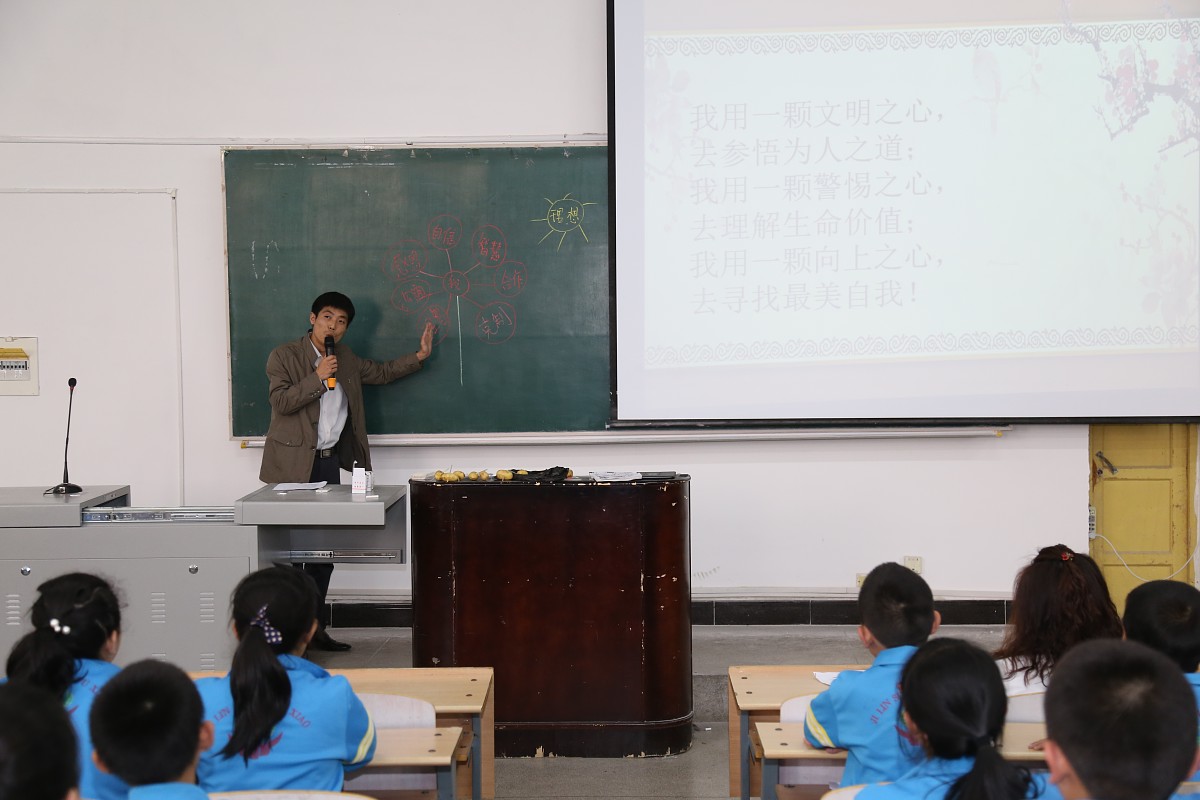 程主任心理讲座部分结束后,邹义丰主任针对学生的道德品质进行了紧密的衔接。他通过对文明的理解让孩子们懂得文明的支撑对人成长的重要性;通过对规范和自律的讲解让孩子们学会只有自我约束才可以达到遵规守矩的境界;通过安全教育让孩子们感悟生命的珍贵和安全的重要性。