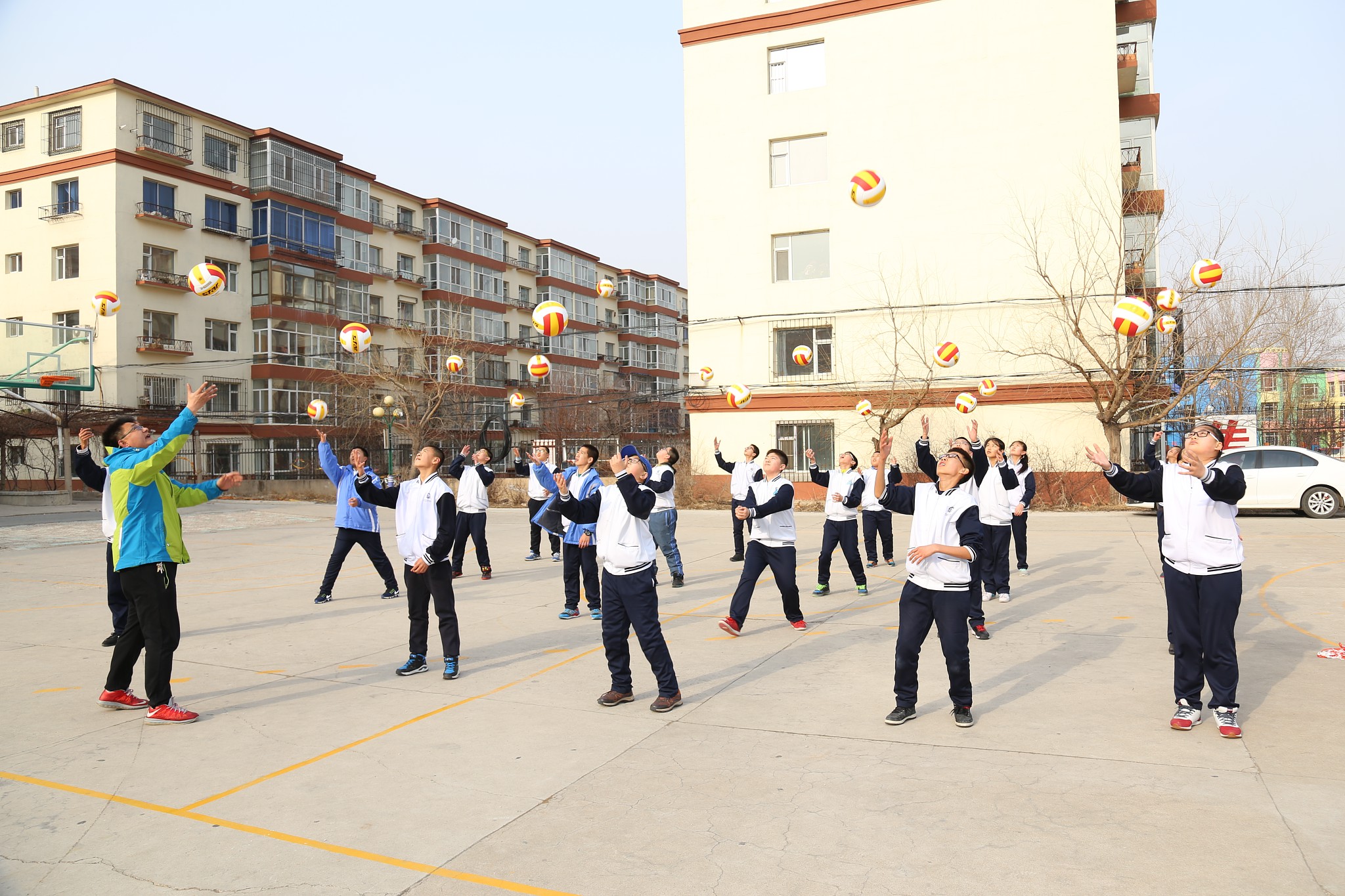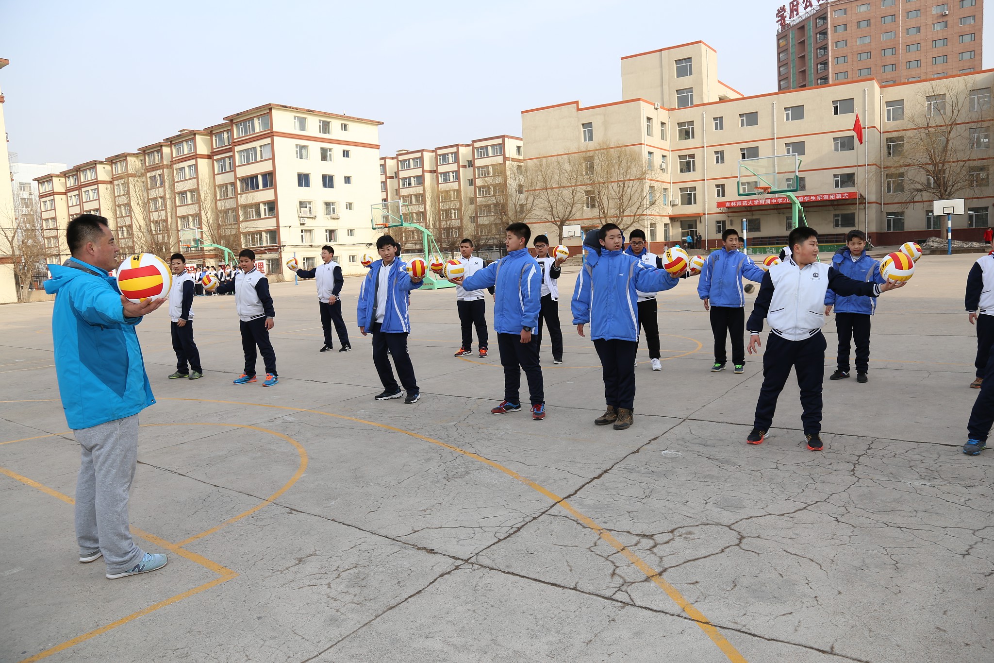 适应体育教育形势发展的要求,促进学生排球特长与能力的快速发展,提高学生的排球技能和兴趣,使学生学有所得,学有所长。张铁刚老师正在教授同学们排球传球的动作要领;赵利民老师则讲授如何抛球与接球。