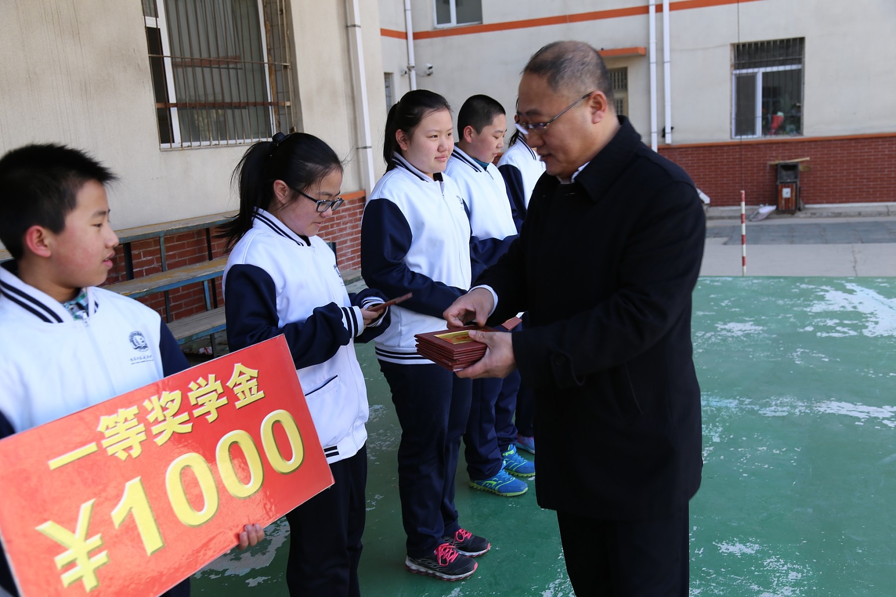 为激励学生的学习积极性,表彰品学兼优的好学生,创造良好的学习氛围,3月23日上午9:30分,吉林师大附中举行2015—2016学年度第一学期奖学金颁发大会。全校七、八、九年级共有85名学生获此殊荣。奖学金颁发仪式由教务处主任陈艳杰主持。