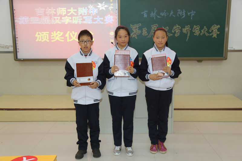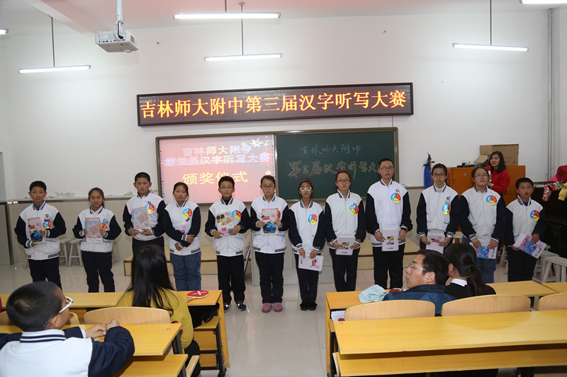 为感悟汉字底蕴,弘扬中国文化,营造健康向上的校园文化氛围,激发学生学习汉字的热情,吉林师大附中教务处于12月2 日、3 日下午在阶梯教室举办了第三届七、八年级汉字听写大赛,附中附小校长李峰、附中附小副校长孙阳华、附中副校长吴成学、教务处主任陈艳杰、成秀琴及语文学科老师和七、八年级各班学生代表到现场观看了比赛。